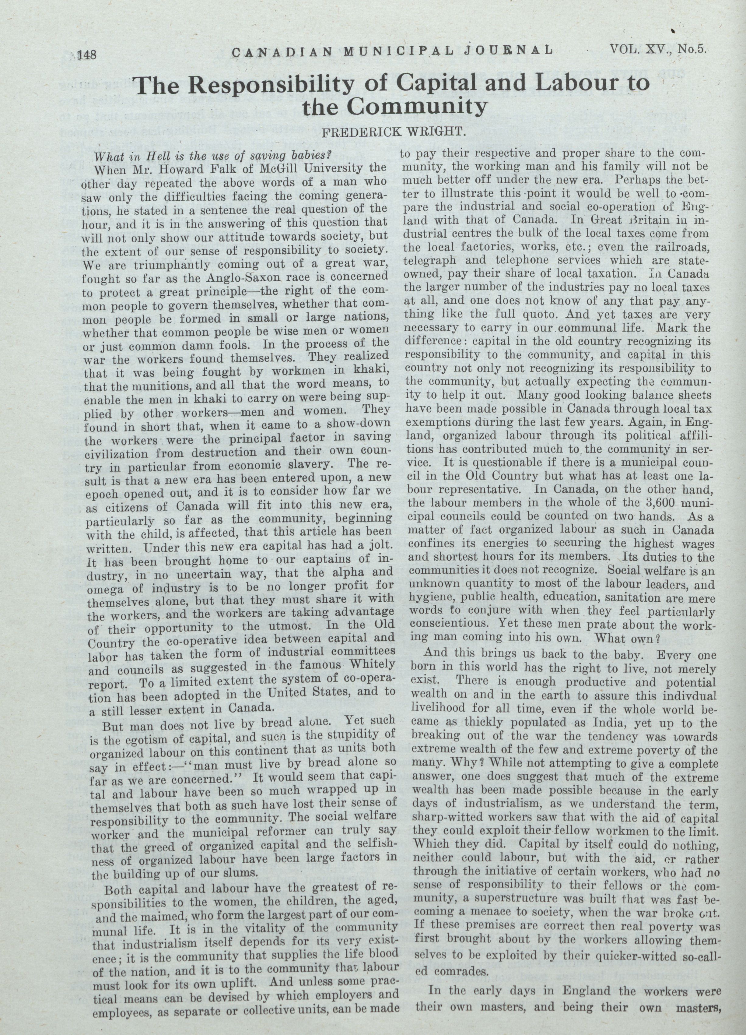 - The Canadian Municipal Journal. : Vol. XV, No. 5 (May, 1919)