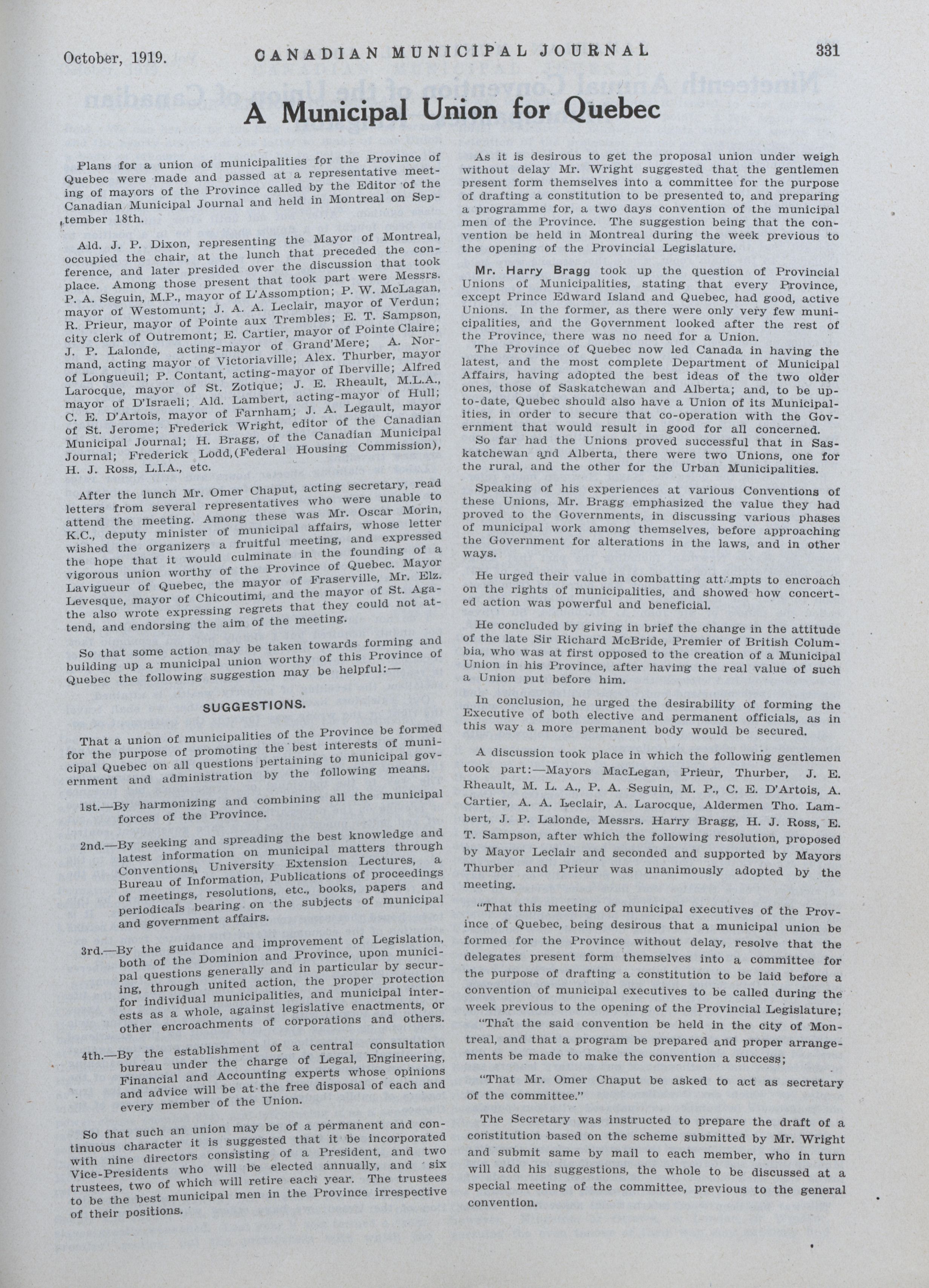 - The Canadian Municipal Journal. : Vol. XV, No. 10 (October, 1919)