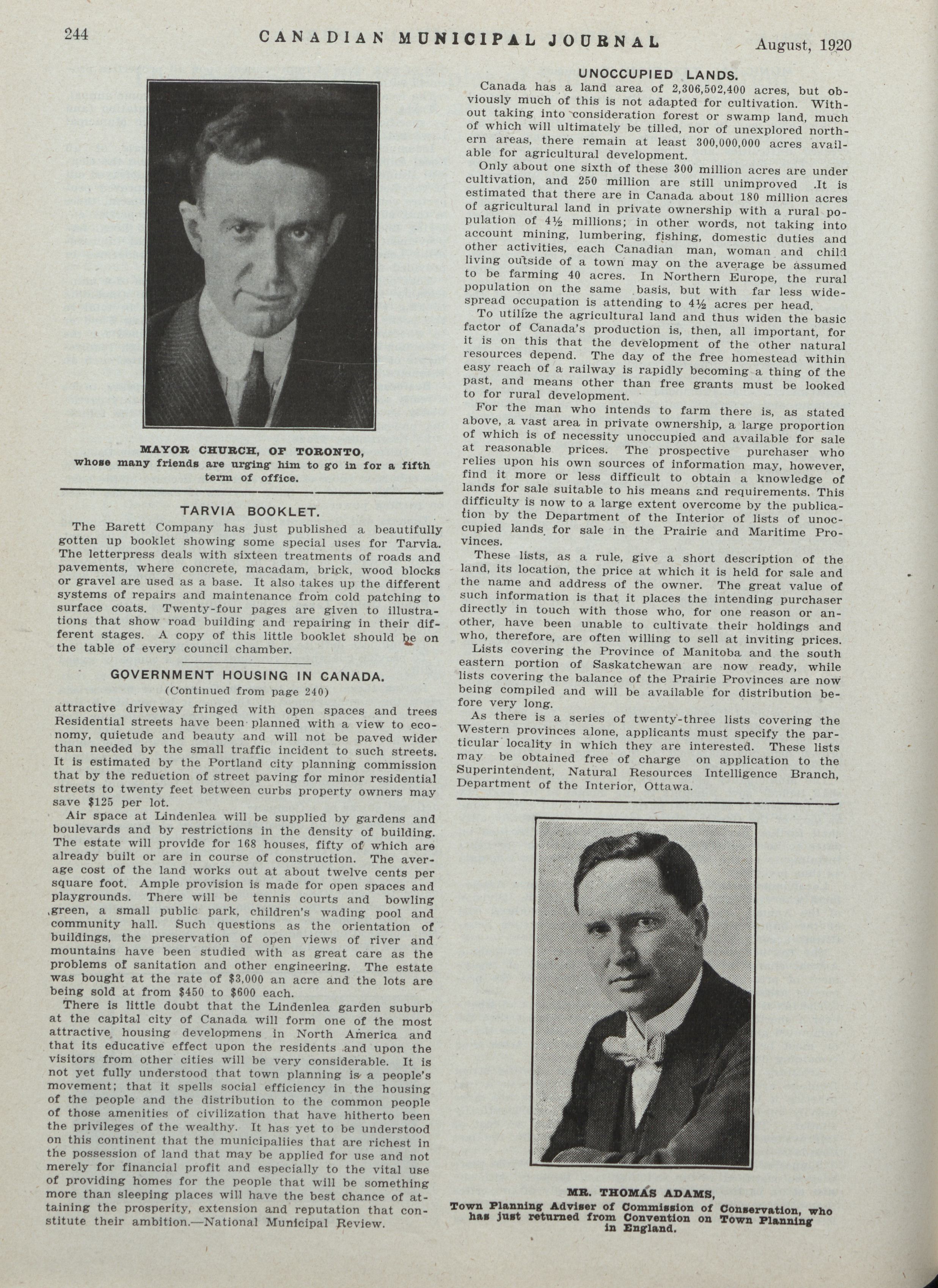 The Canadian Municipal Journal. : Vol. XVI, No. 8 (August, 1920)
