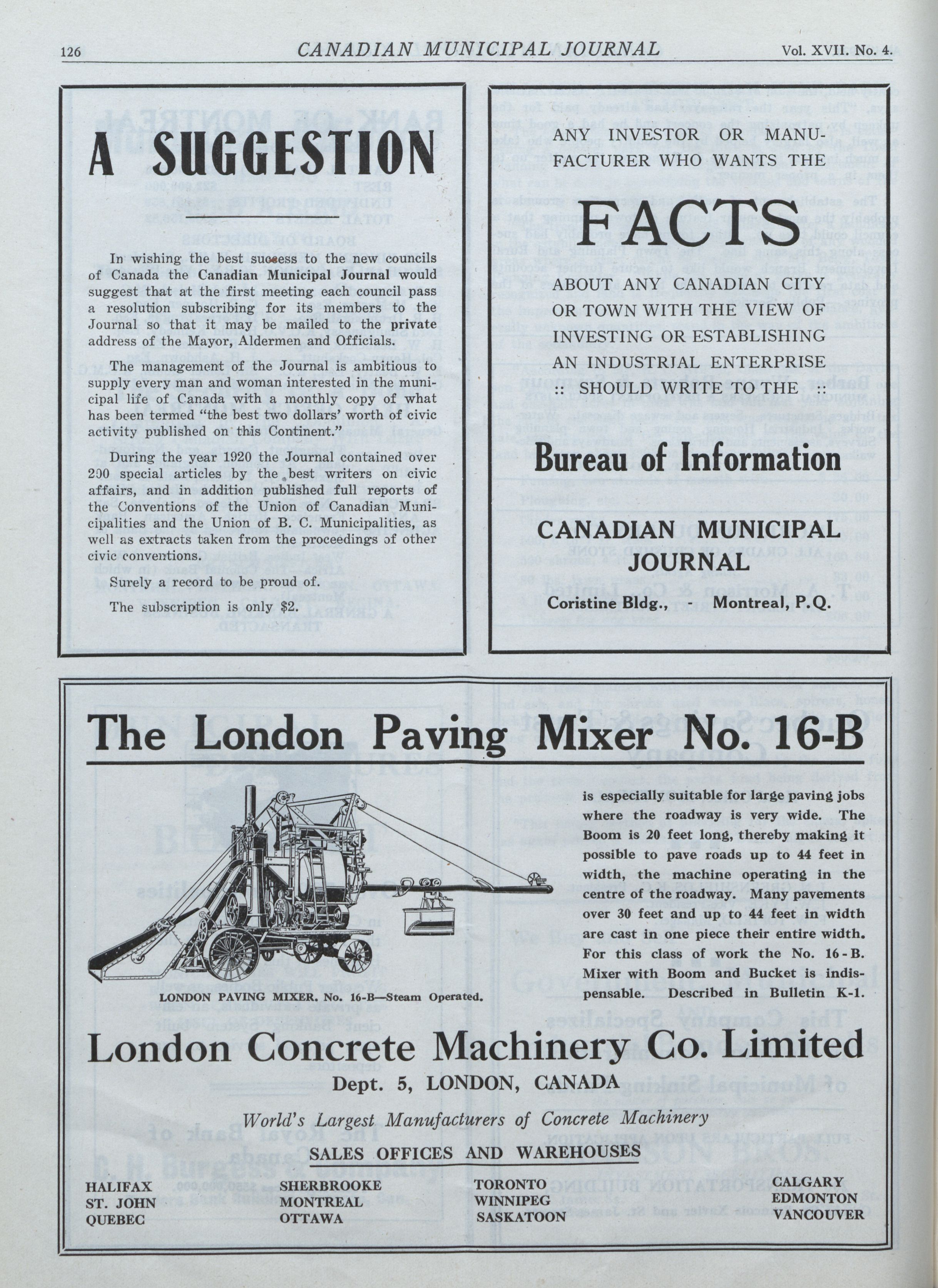 - The Canadian Municipal Journal. : Vol. XVII, No. 4 (April, 1921)