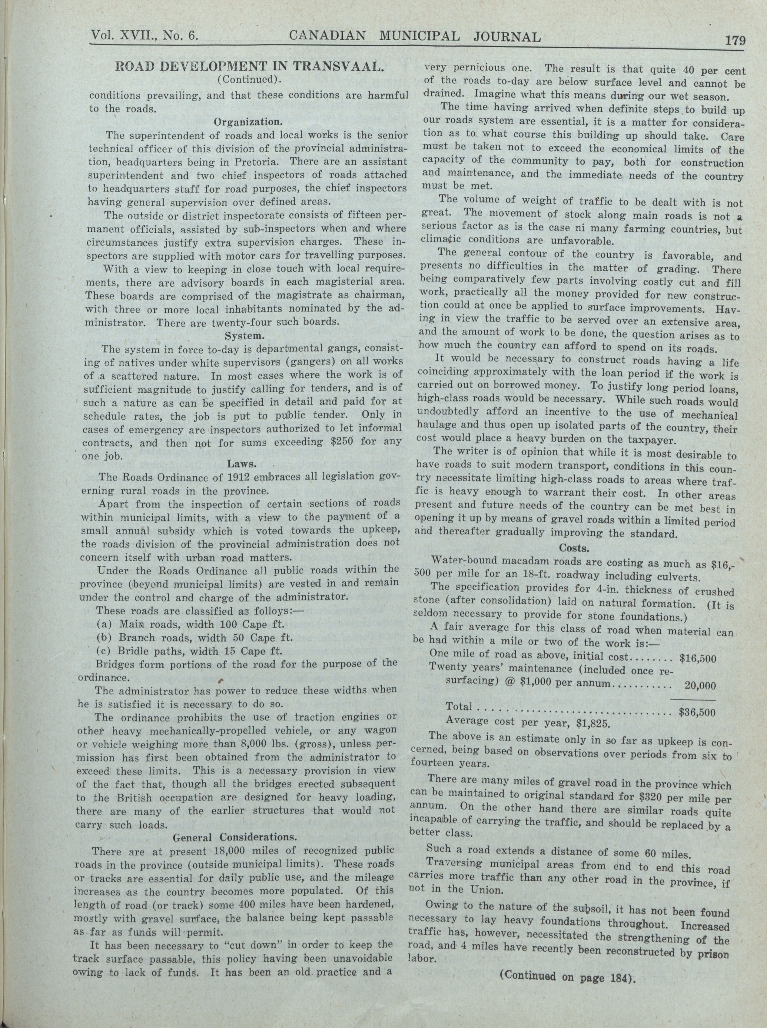 - The Canadian Municipal Journal. : Vol. XVII, No. 6 (June, 1921)