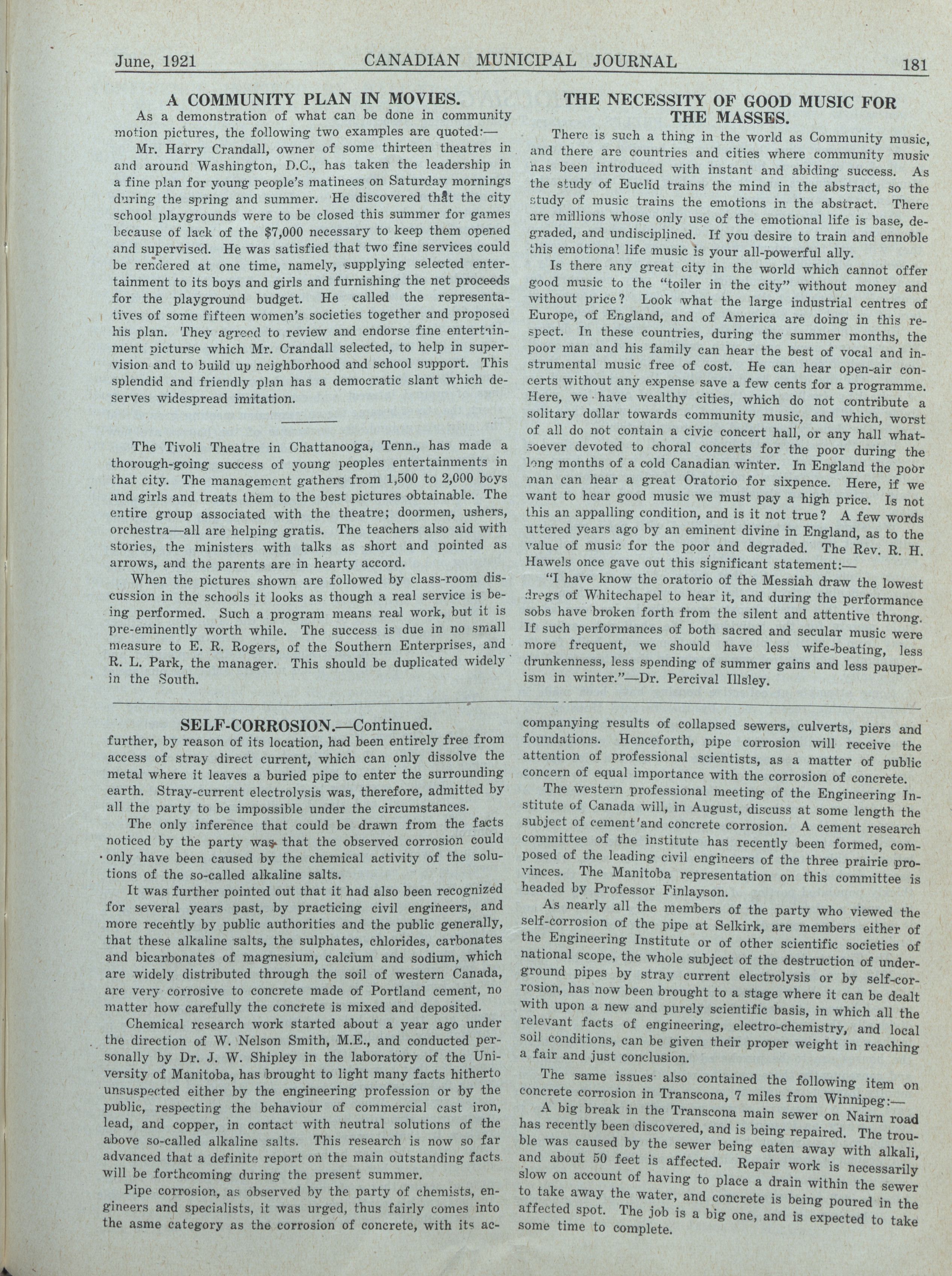 - The Canadian Municipal Journal. : Vol. XVII, No. 6 (June, 1921)