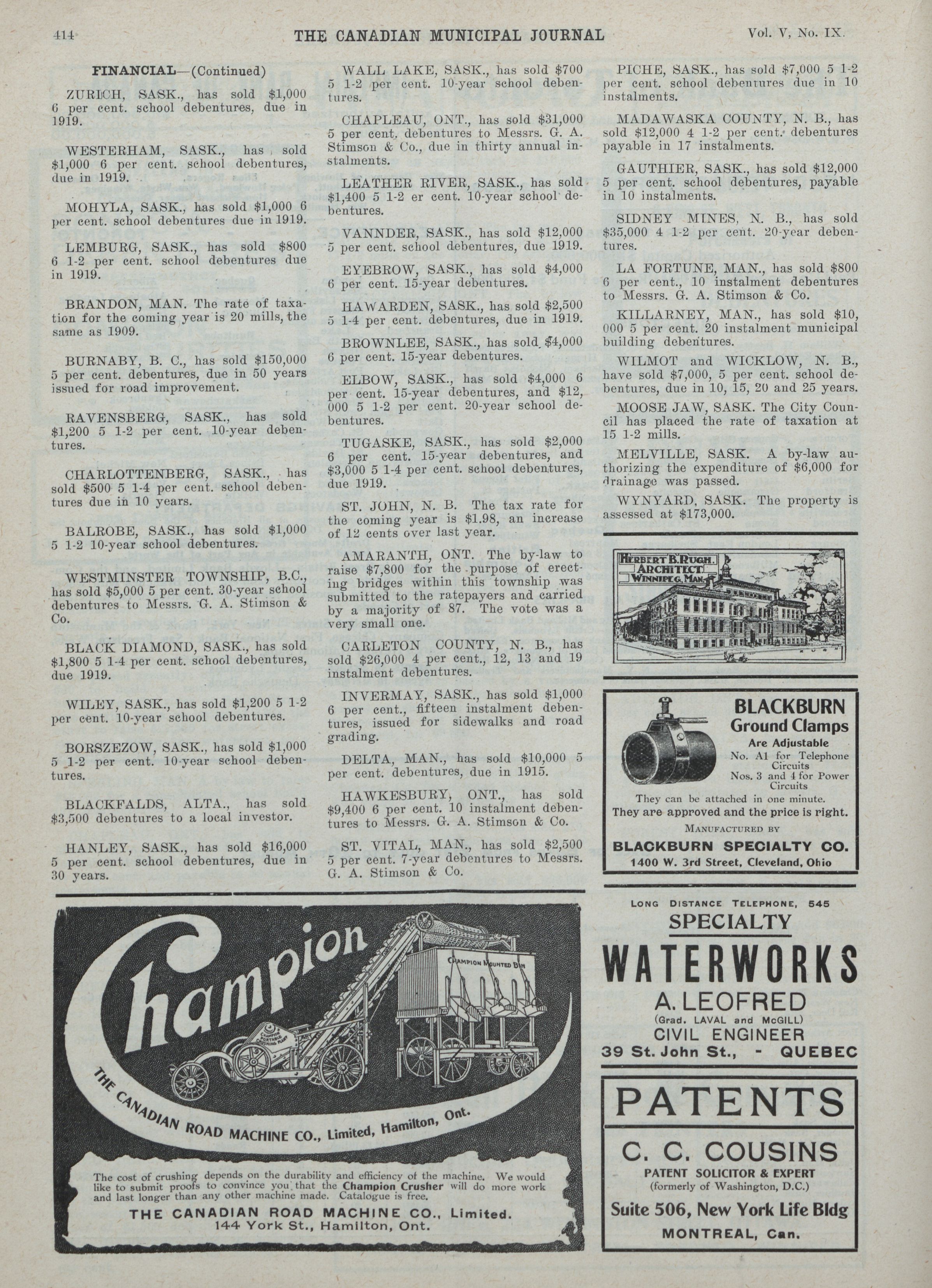 The Canadian Municipal Journal. : Volume V, Number 9 (September, 1909)