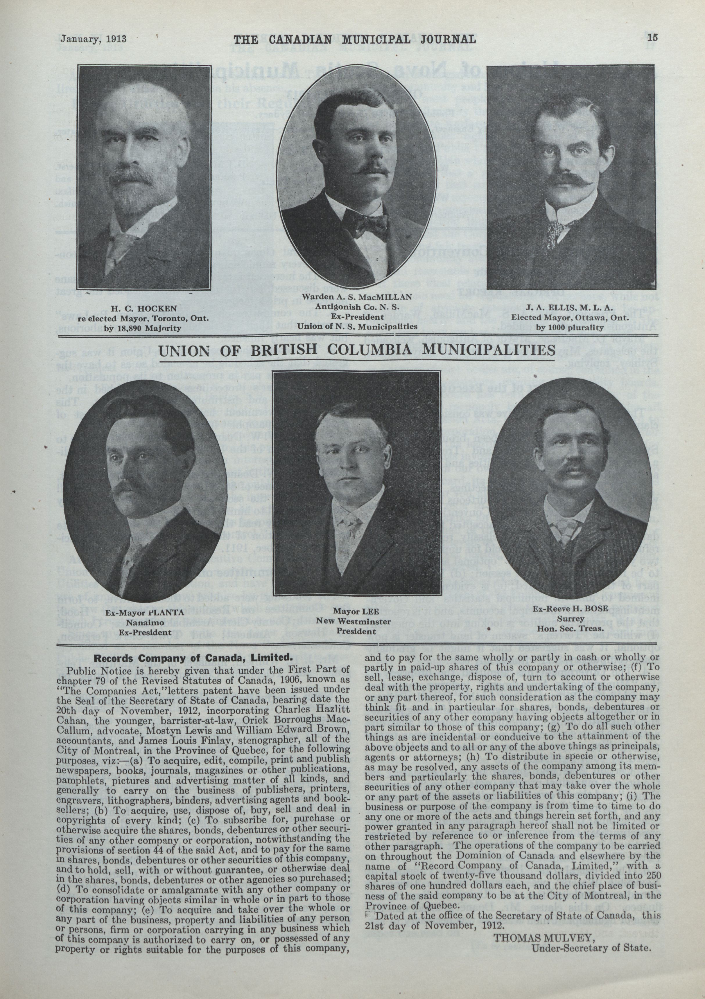 - The Canadian Municipal Journal. : Vol. IX, No. 1 (January, 1913)