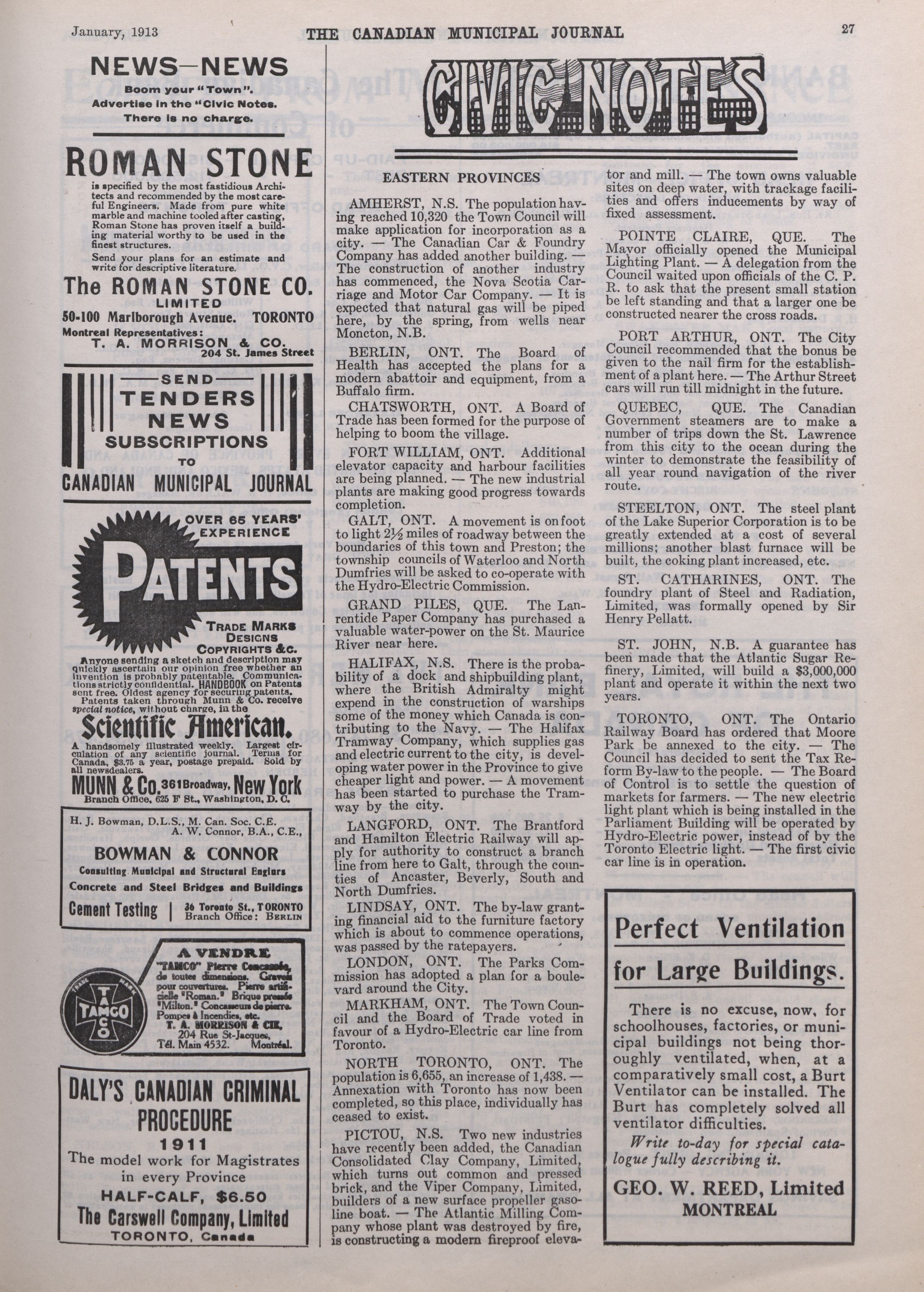 - The Canadian Municipal Journal. : Vol. IX, No. 1 (January, 1913)