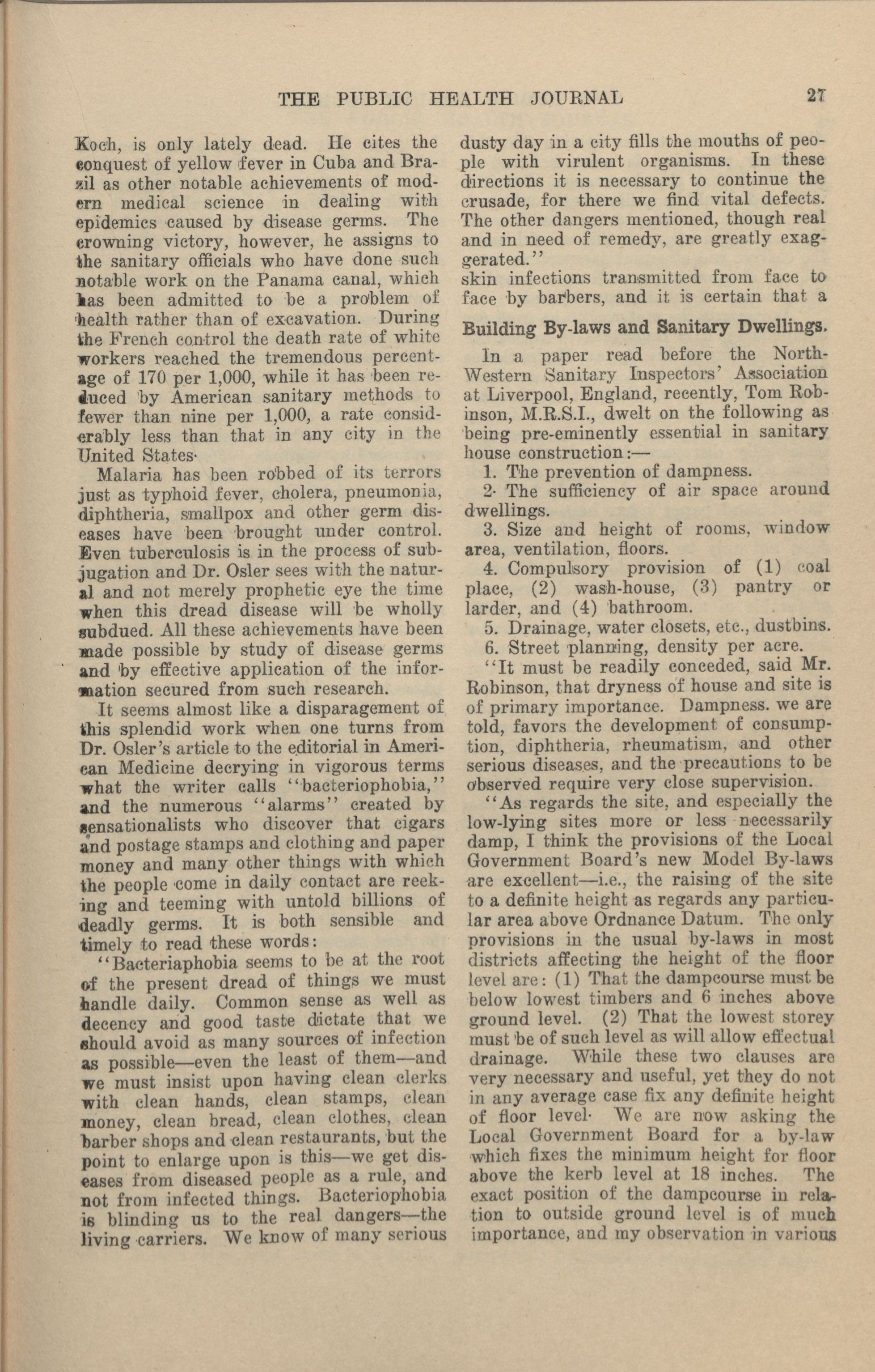- The Public Health Journal. : Vol. II No. 1 (January, 1911)