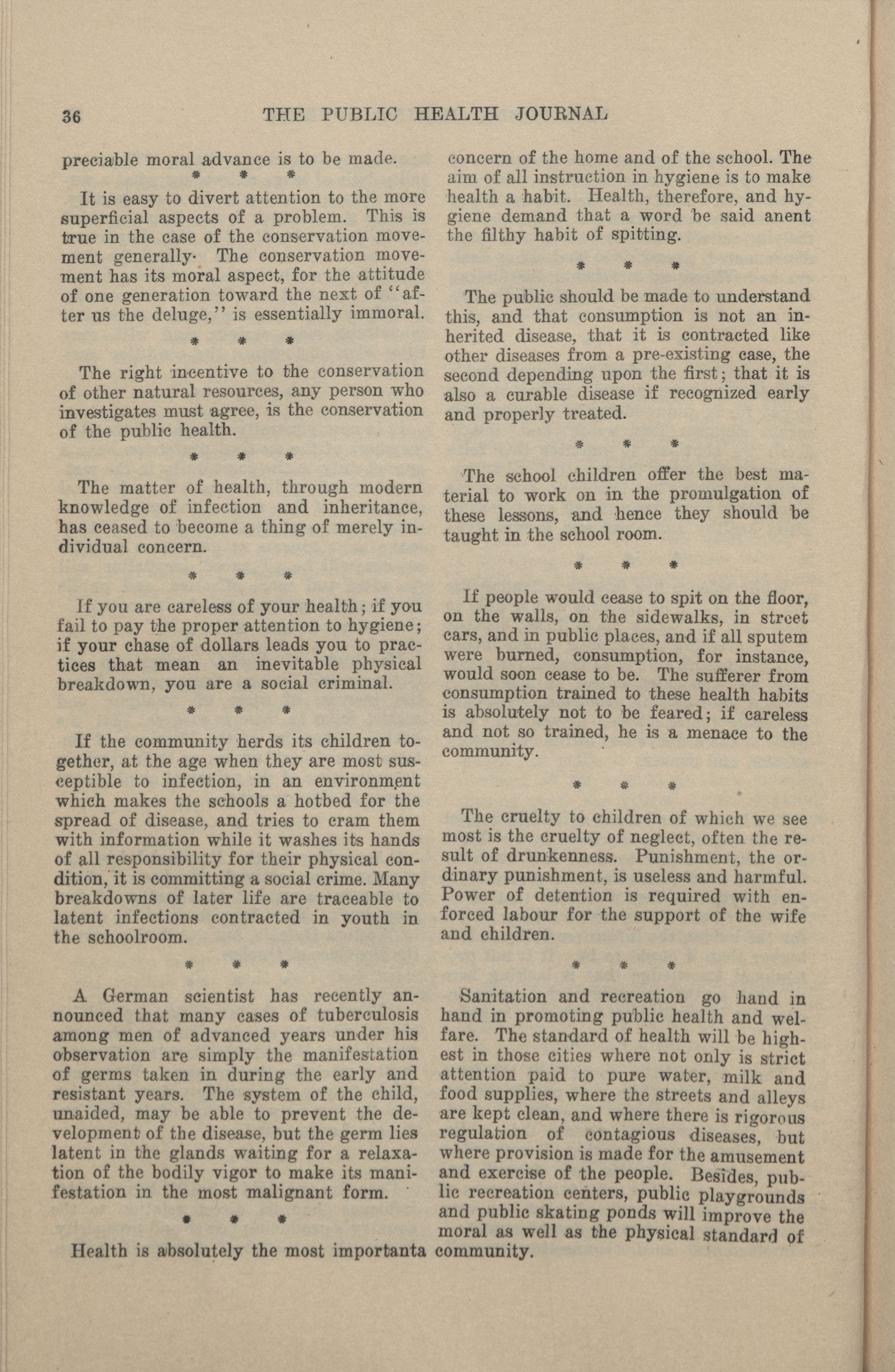 The Public Health Journal. : Vol. II No. 1 (January, 1911)