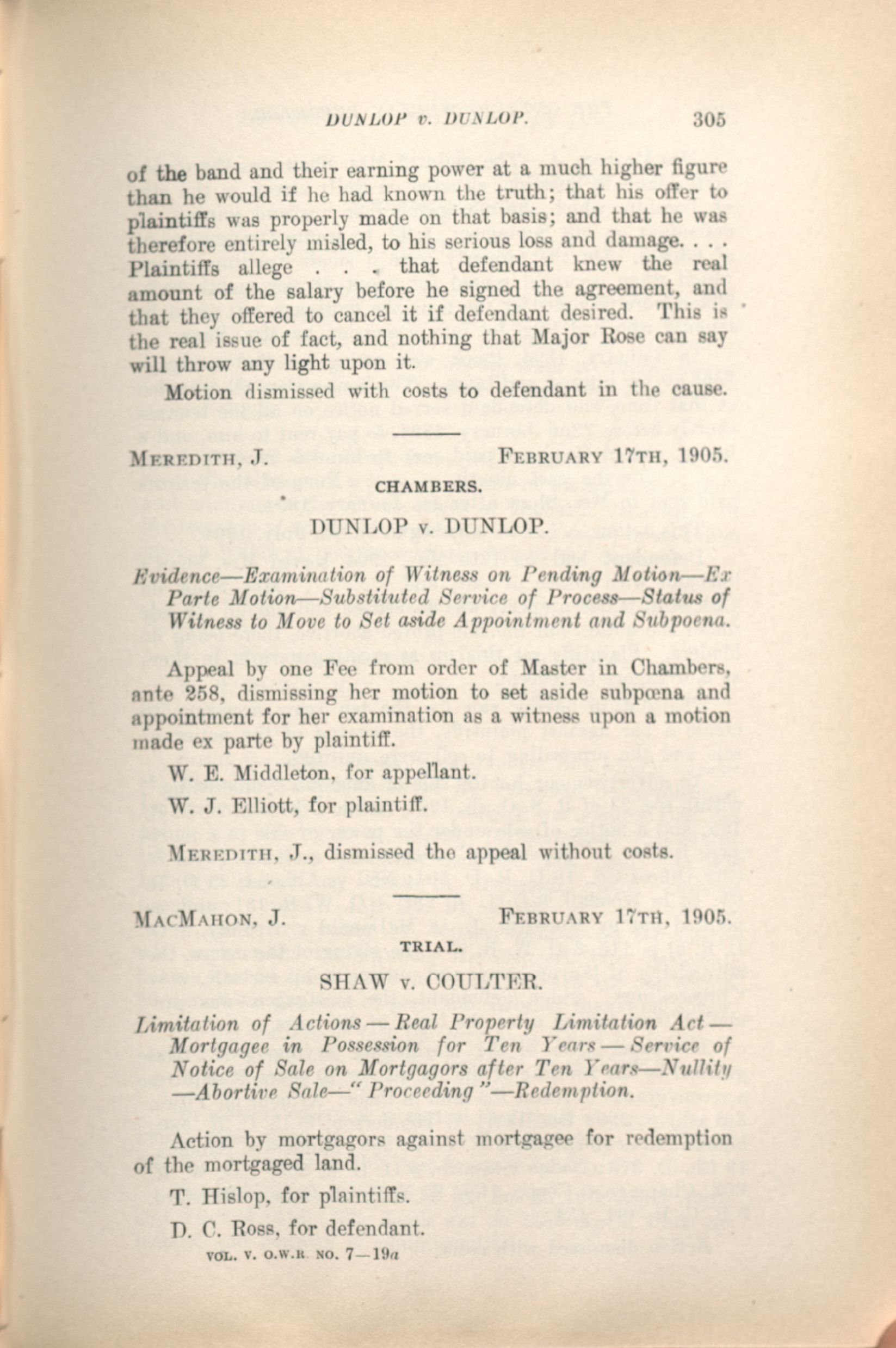 - The Ontario weekly reporter. : Vol. V. No. 7 (February 23, 1905.)