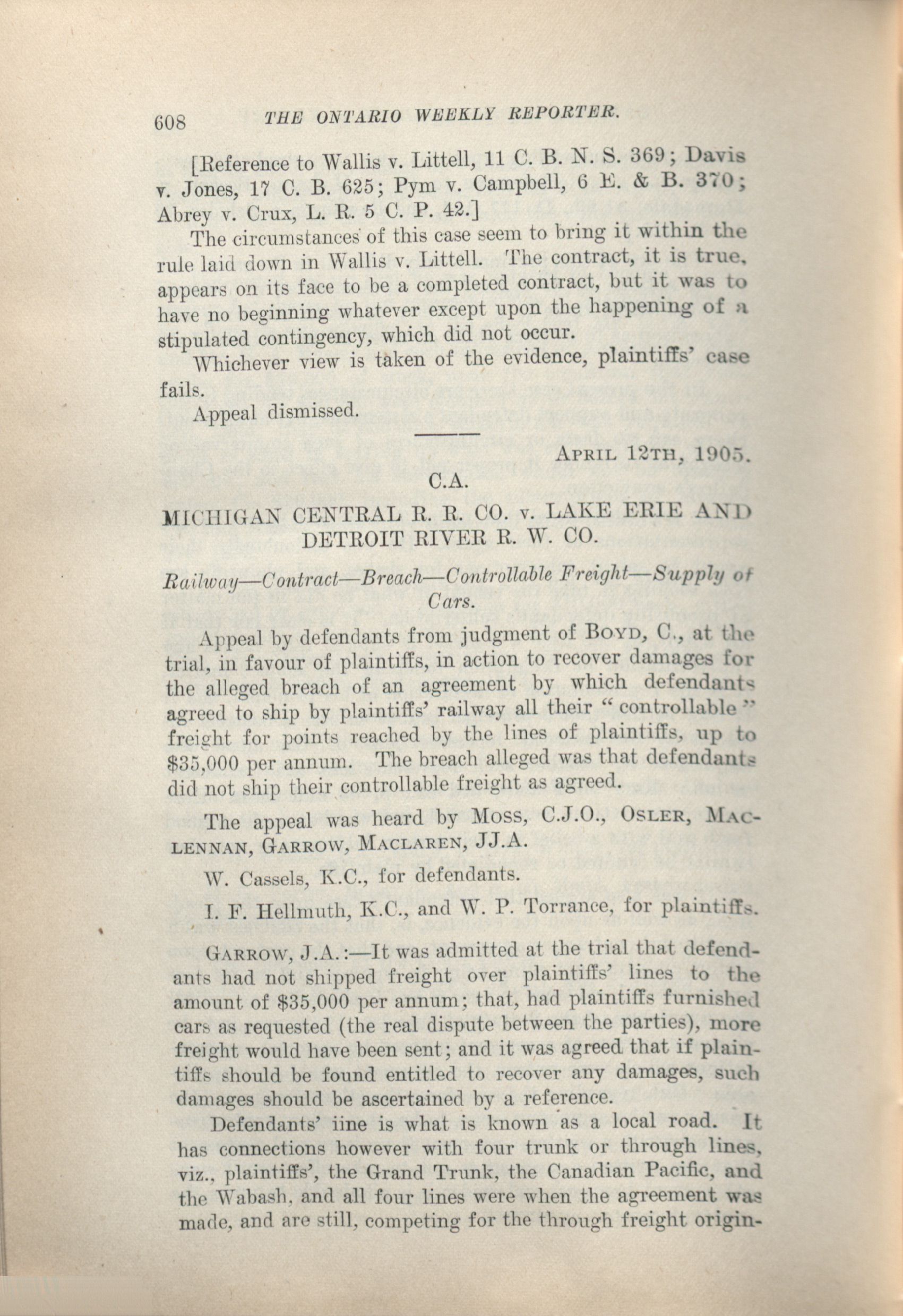The Ontario weekly reporter. : Vol. V. No. 15 (April 20, 1905.)
