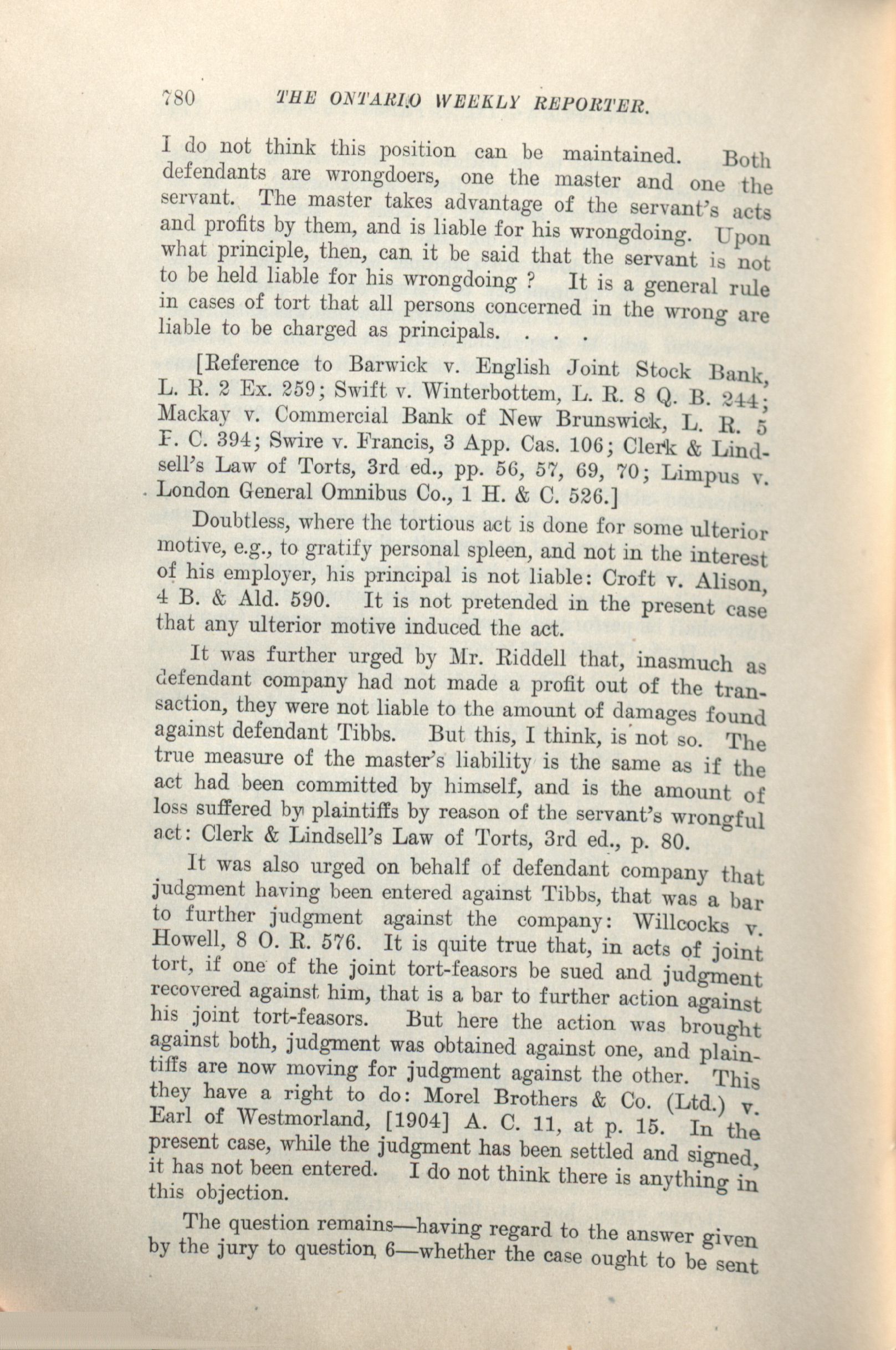 The Ontario weekly reporter. : Vol. V. No. 20 (May 25, 1905.)