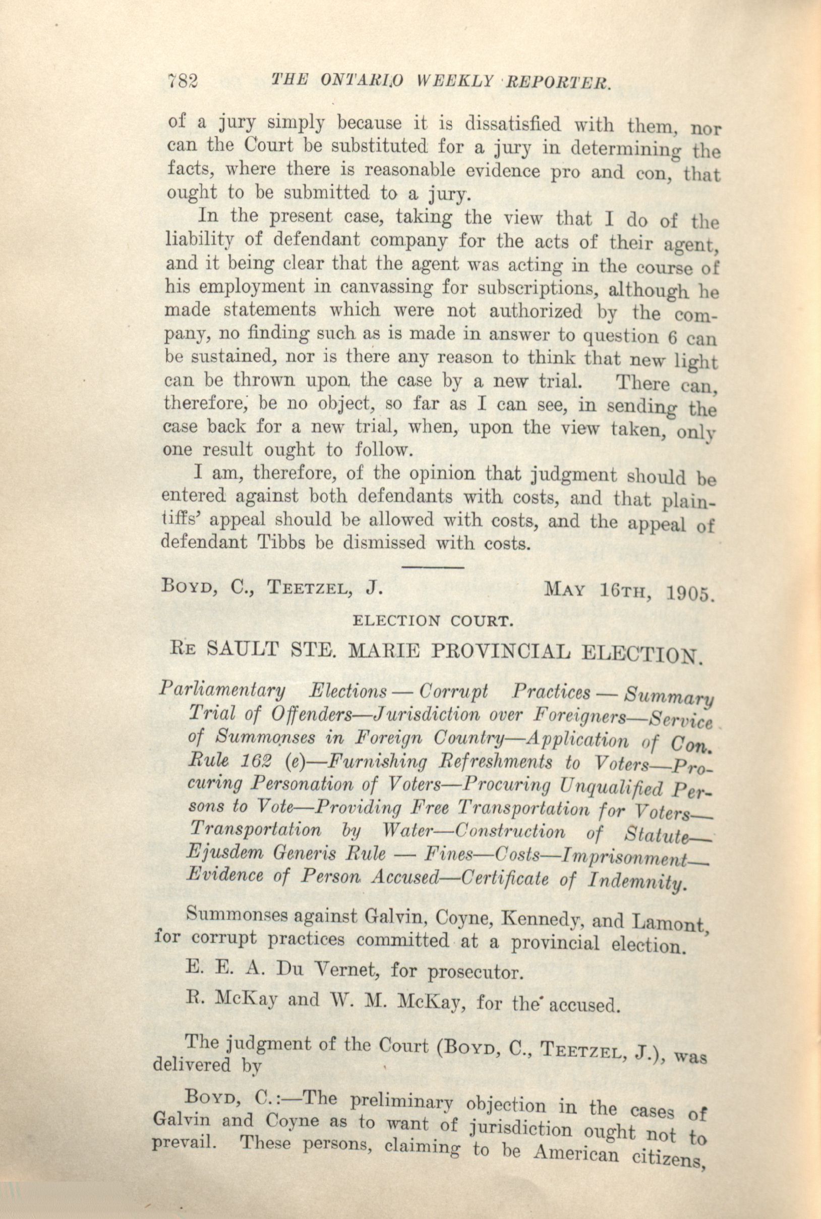 - The Ontario weekly reporter. : Vol. V. No. 20 (May 25, 1905.)