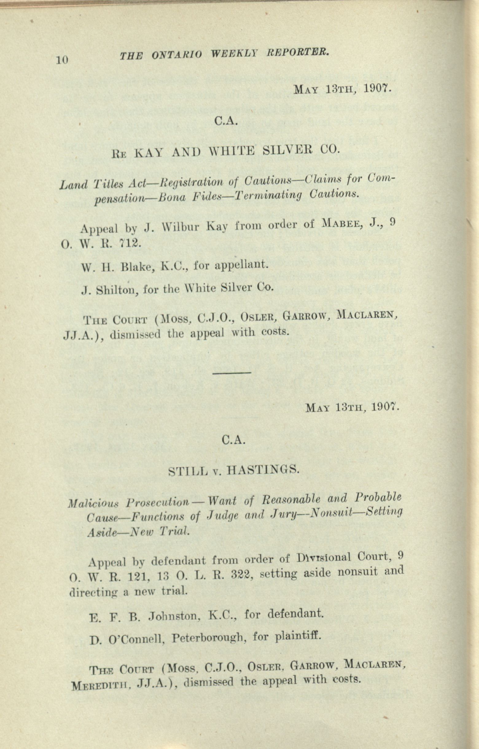 The Ontario weekly reporter. : Vol. X. No. 1 (May 23, 1907.)