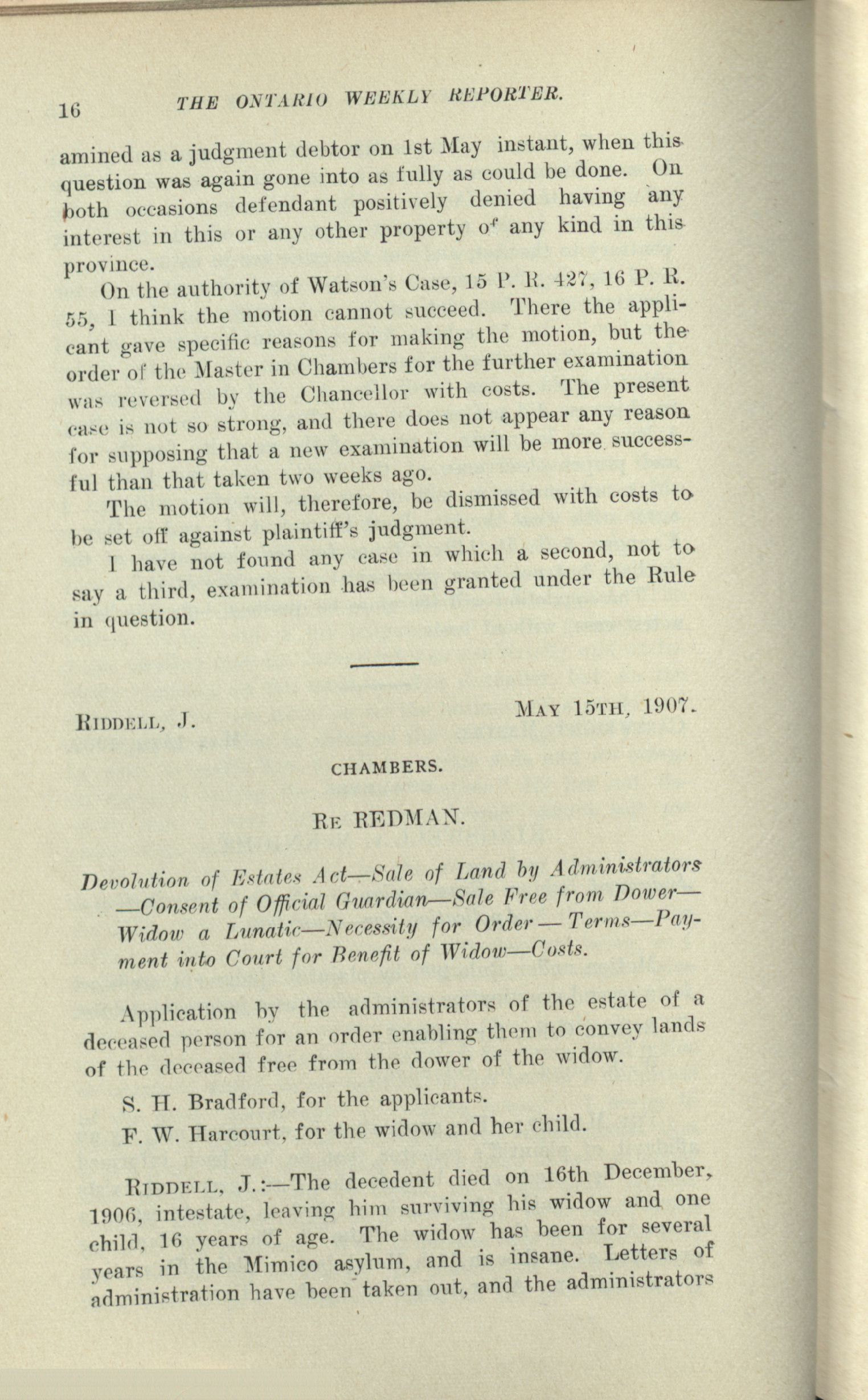 The Ontario weekly reporter. : Vol. X. No. 1 (May 23, 1907.)