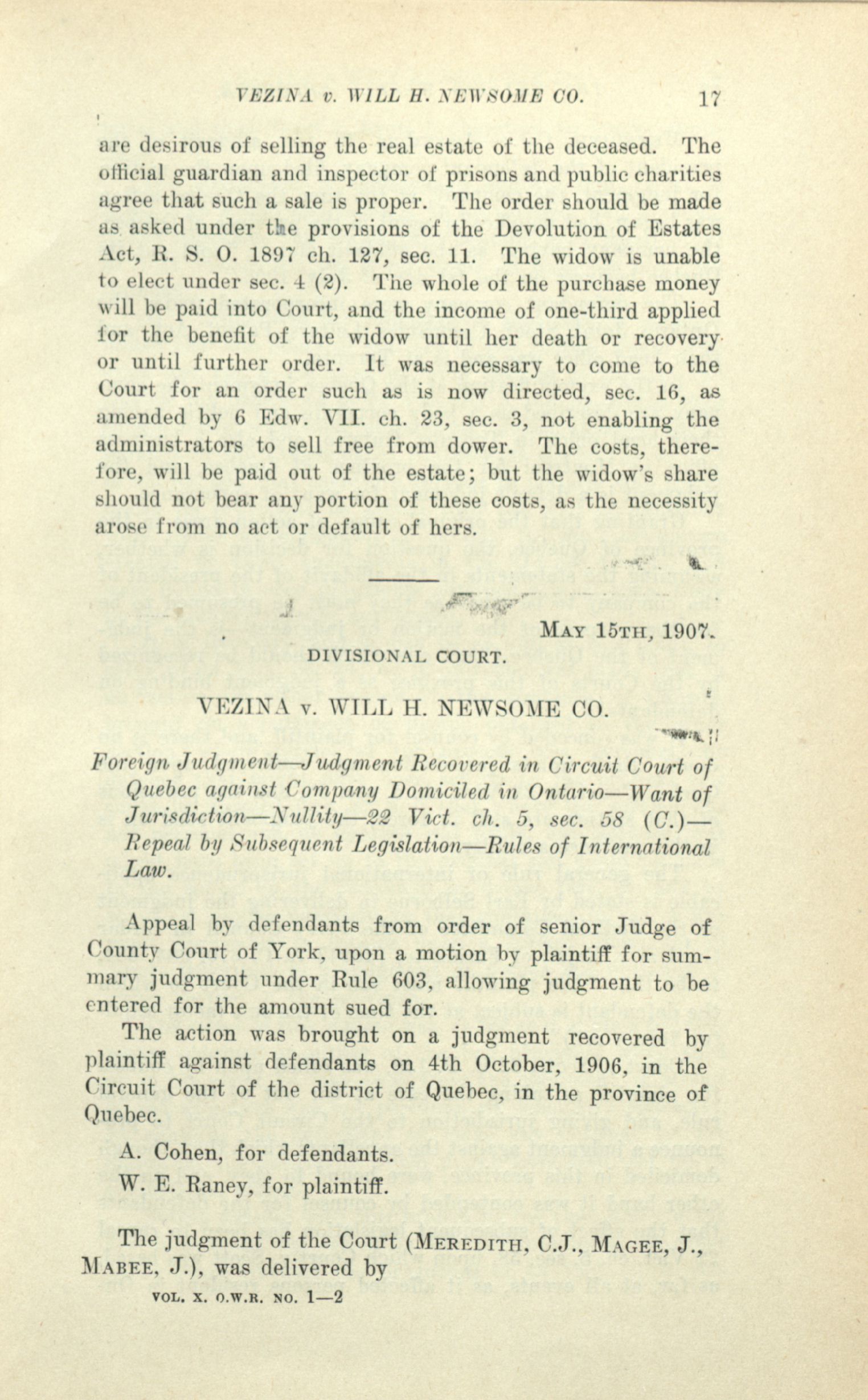 - The Ontario weekly reporter. : Vol. X. No. 1 (May 23, 1907.)