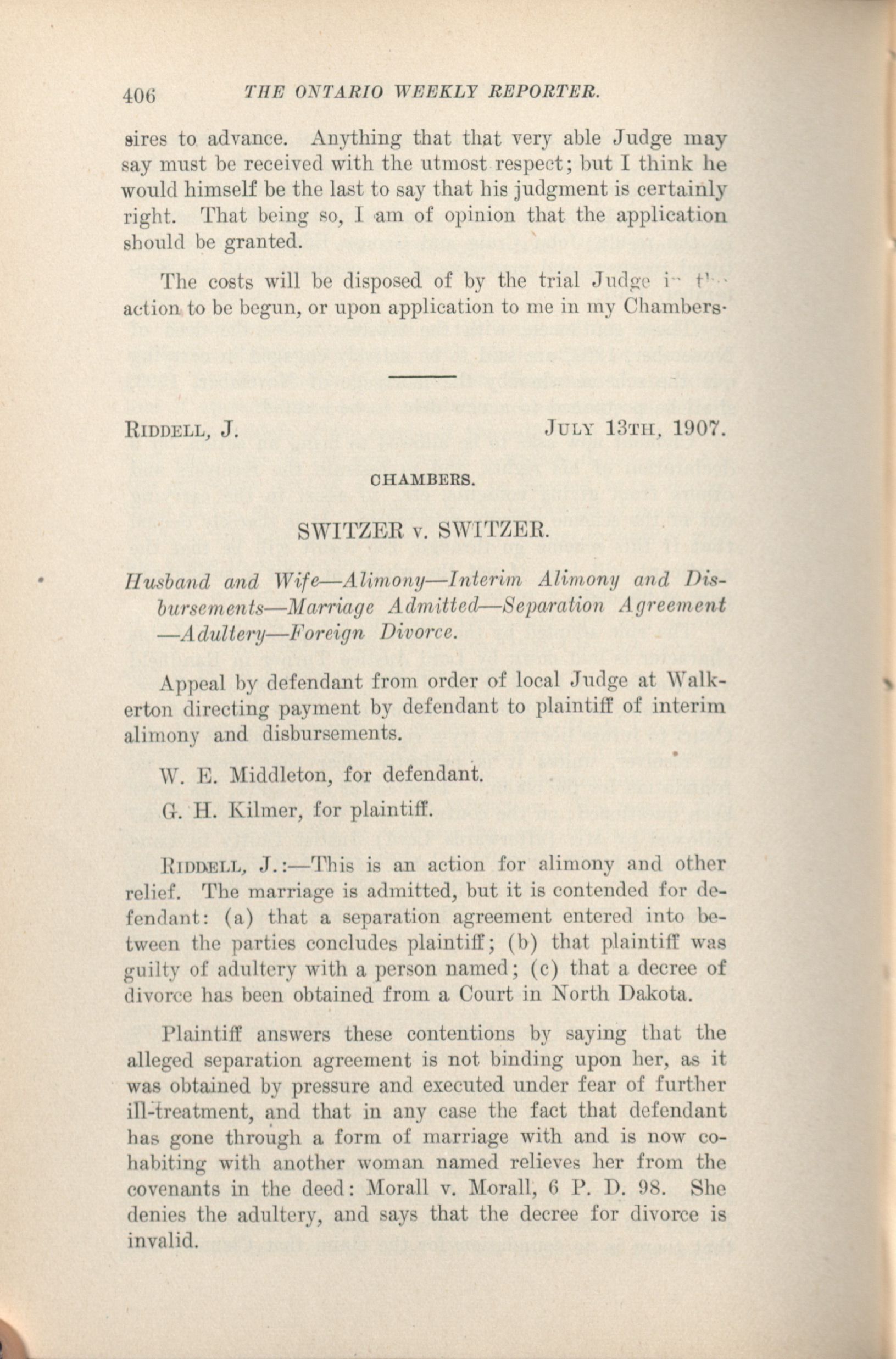 The Ontario weekly reporter. : Vol. X. No. 14 (August 29, 1907.)
