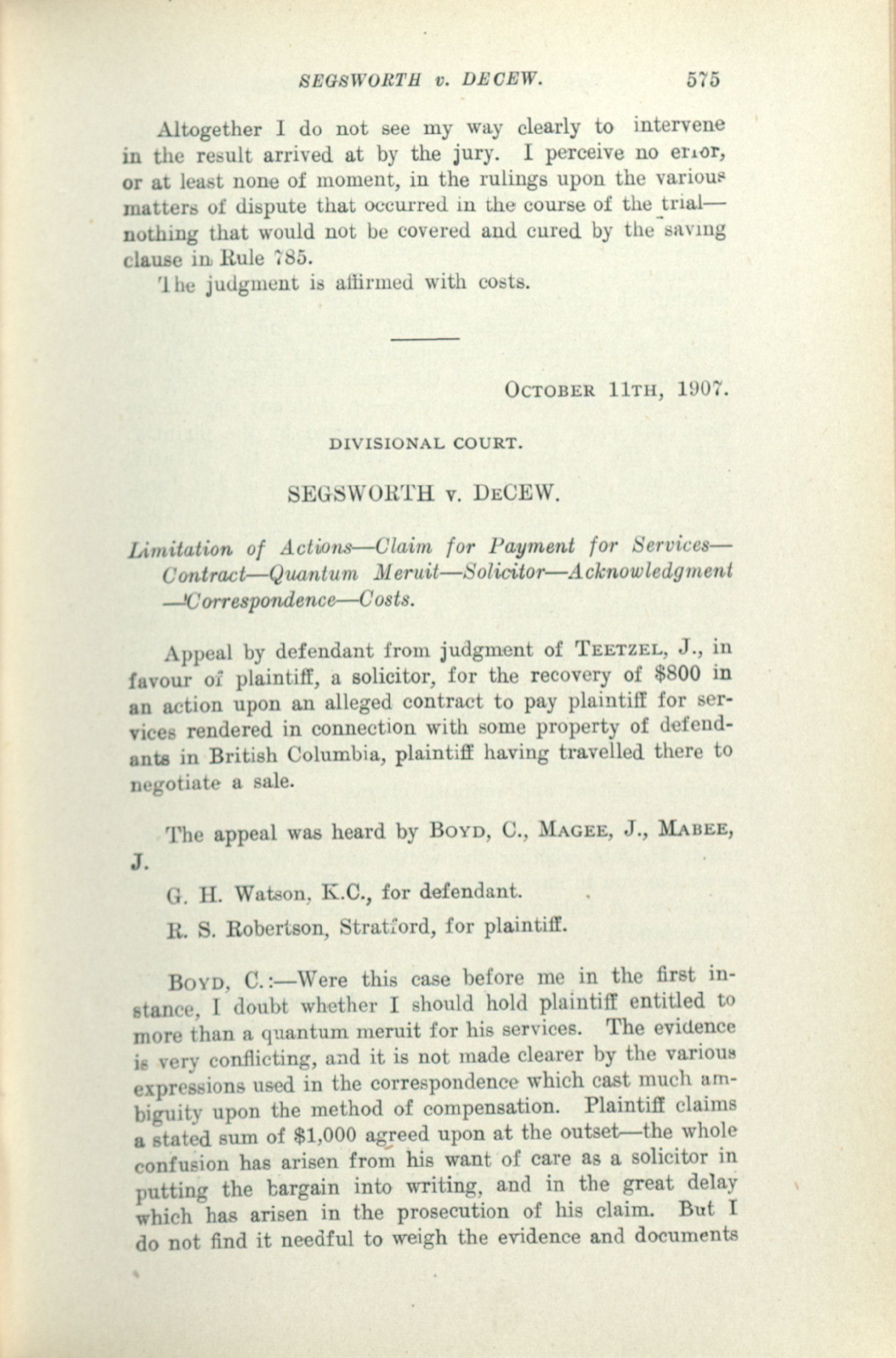 The Ontario weekly reporter. : Vol. X. No. 21 (October 17, 1907.)