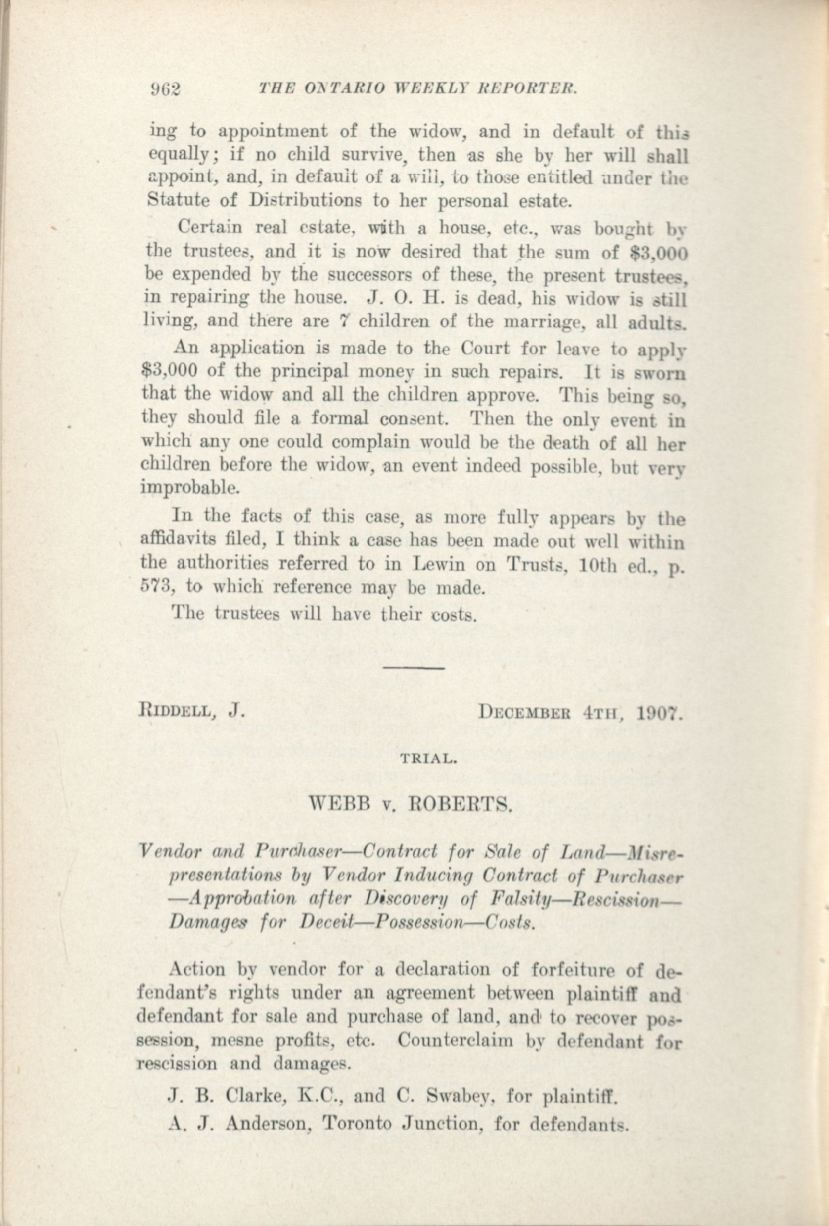 The Ontario weekly reporter. : Vol. X. No. 29 (December 12, 1907.)