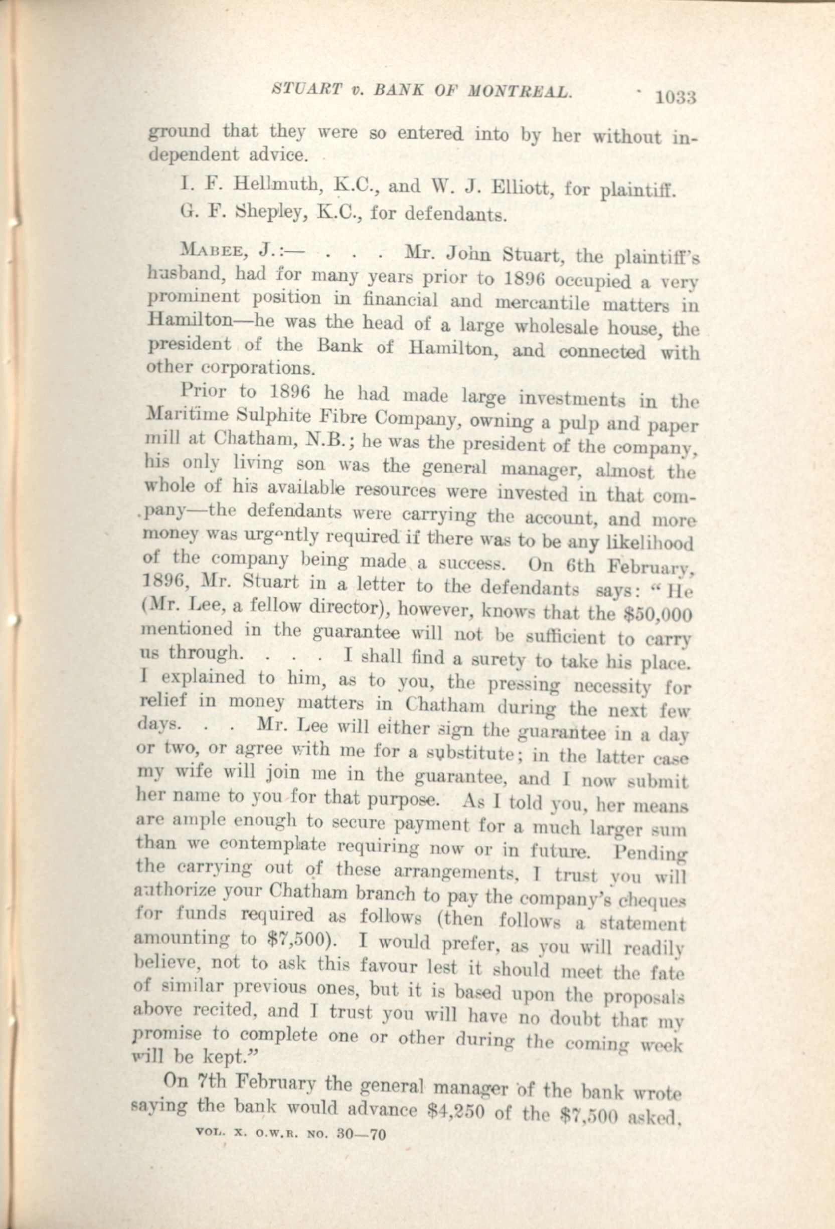 The Ontario weekly reporter. : Vol. X. No. 30 (December 19, 1907.)