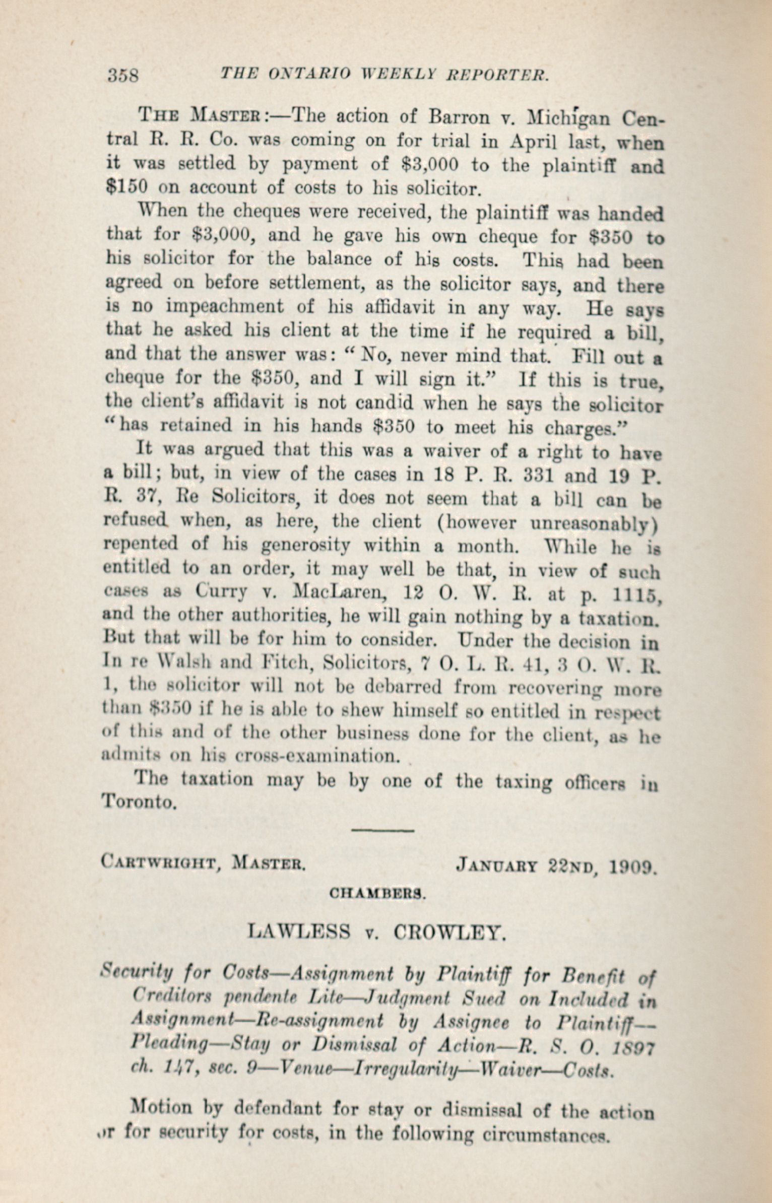 - The Ontario weekly reporter. : Vol. XIII. No. 4 (January 28, 1909.)
