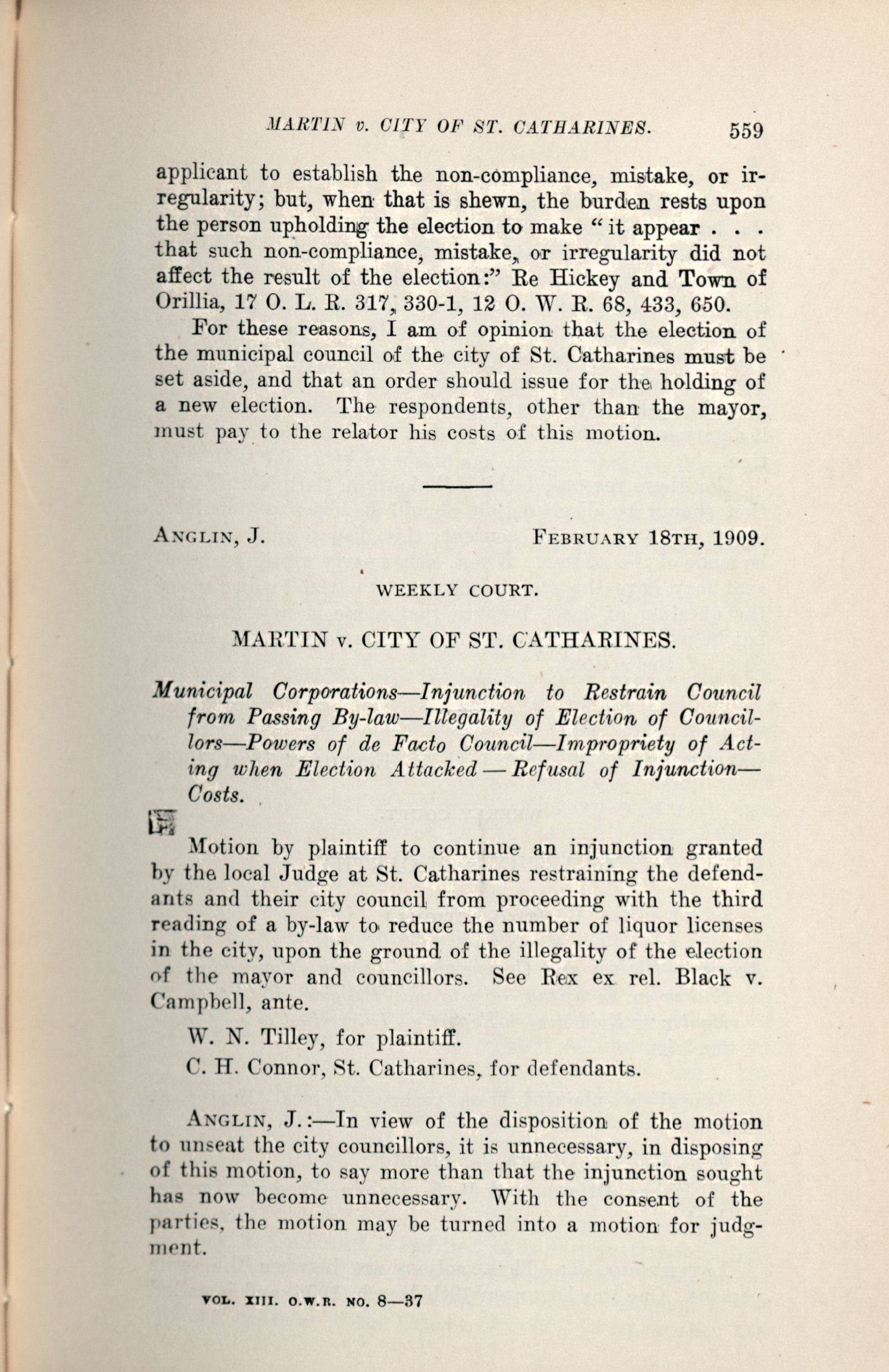 - The Ontario weekly reporter. : Vol. XIII. No. 8 (February 25, 1909.)