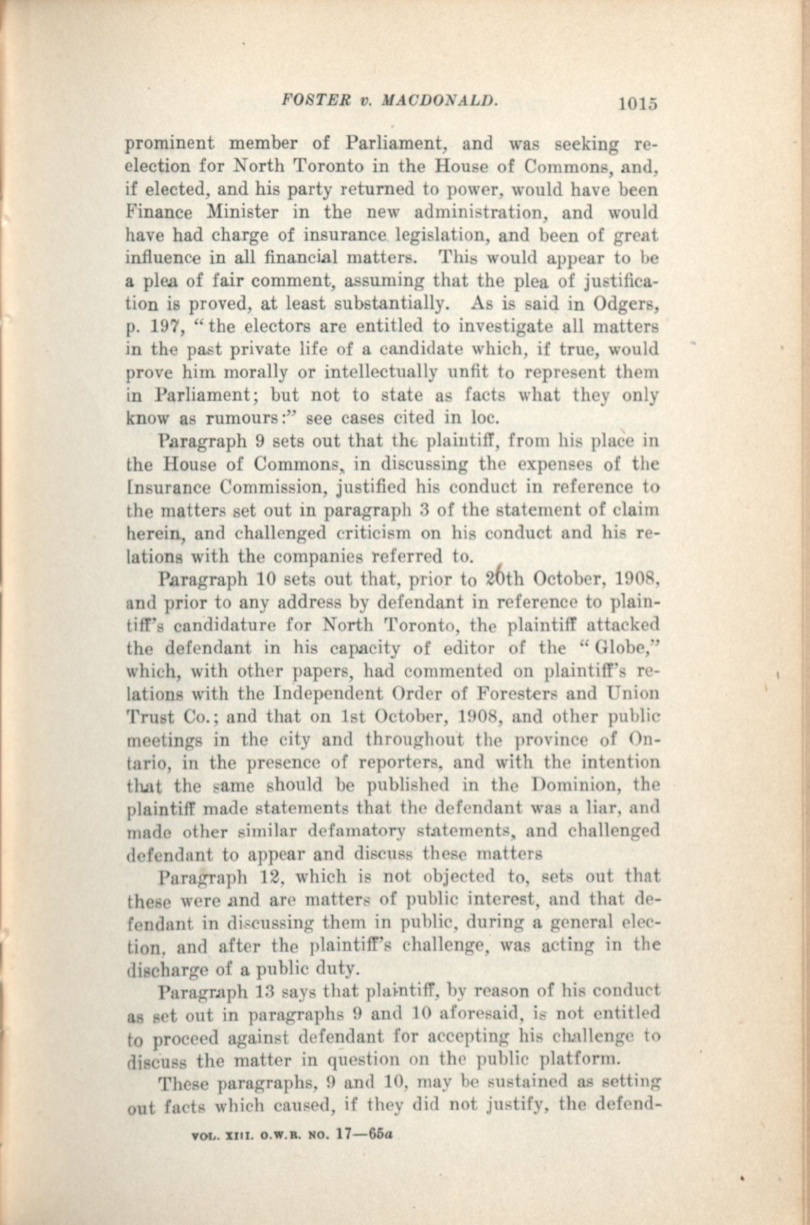 - The Ontario weekly reporter. : Vol. XIII. No. 17 (April 29, 1909.)