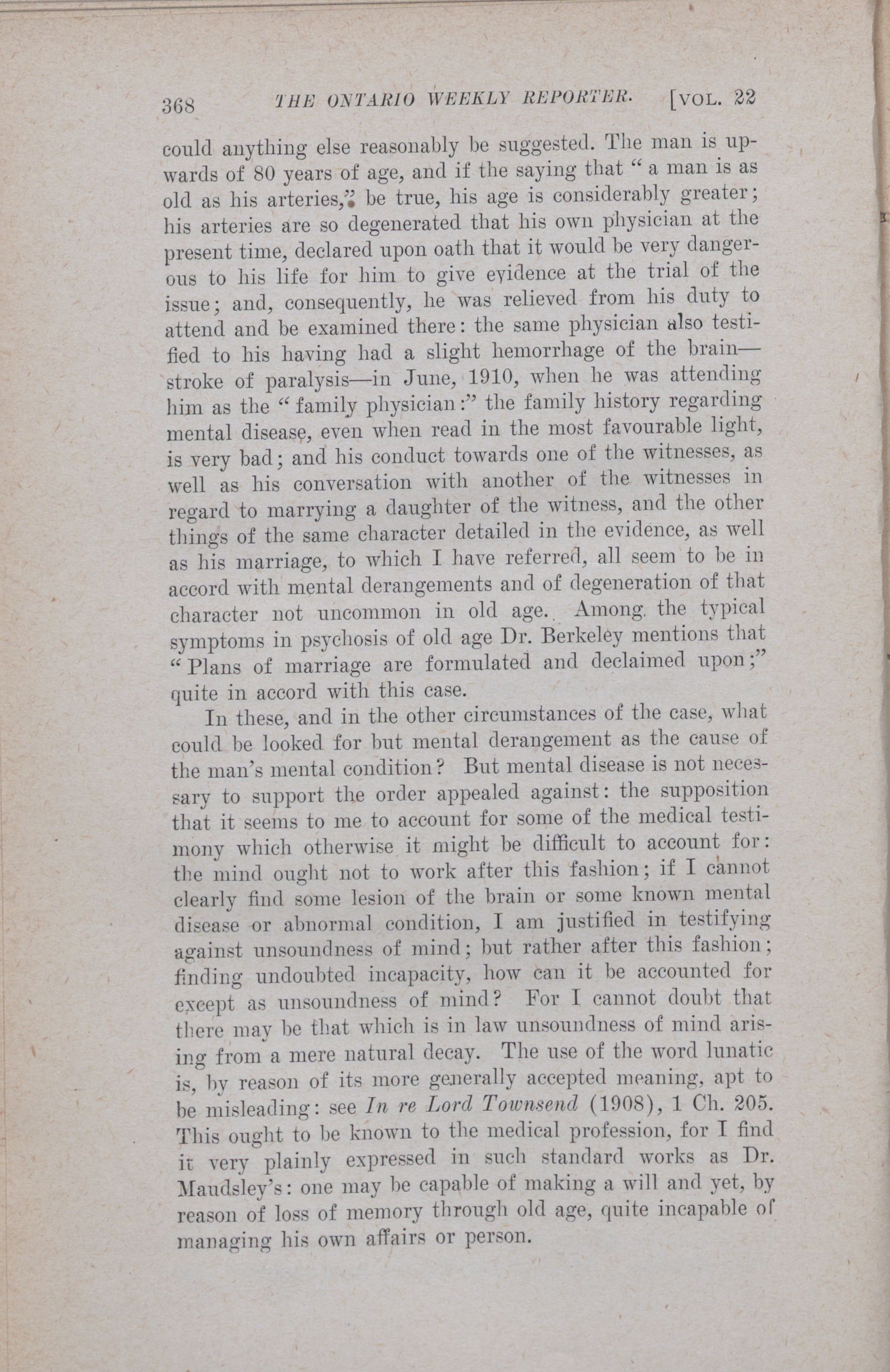 - The Ontario weekly reporter. : Vol. 22 No. 6 (July 4, 1912.)