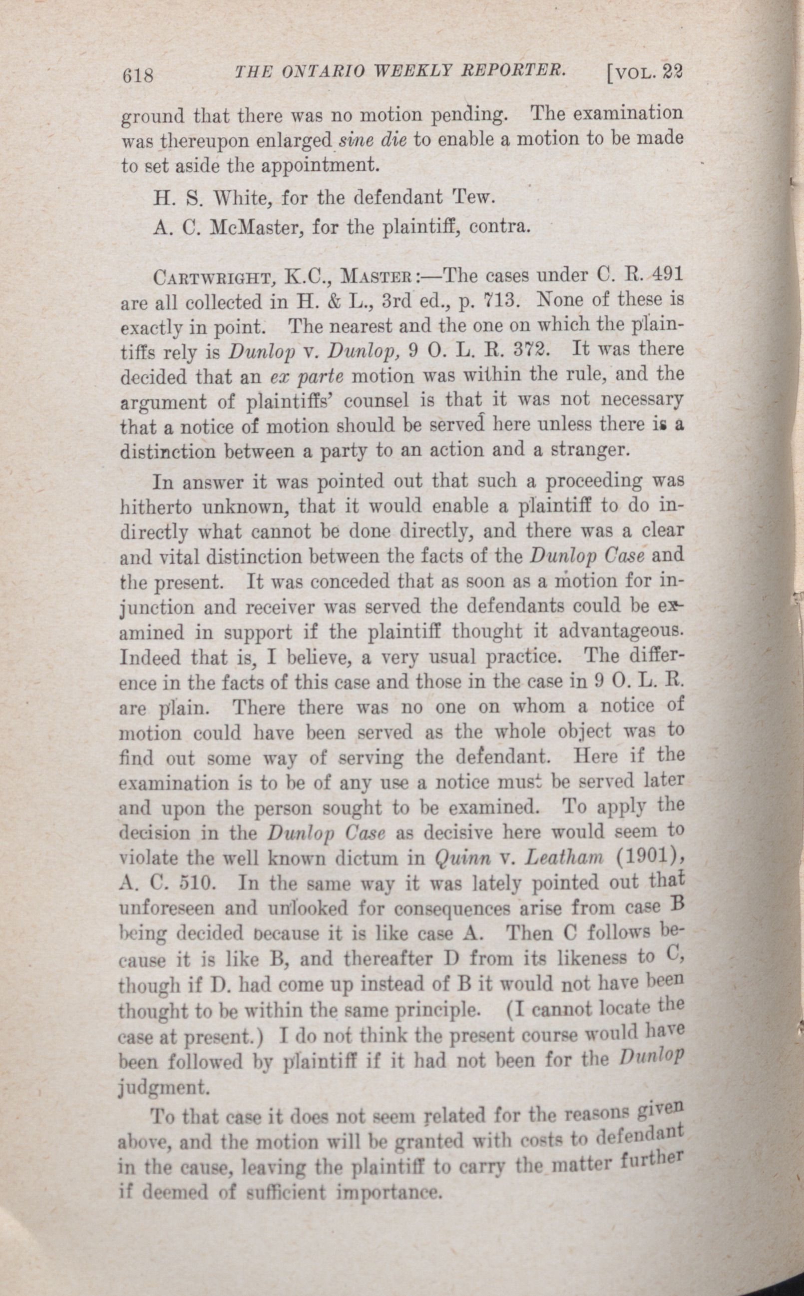 The Ontario weekly reporter. : Vol. 22 No. 9 (July 25, 1912.)