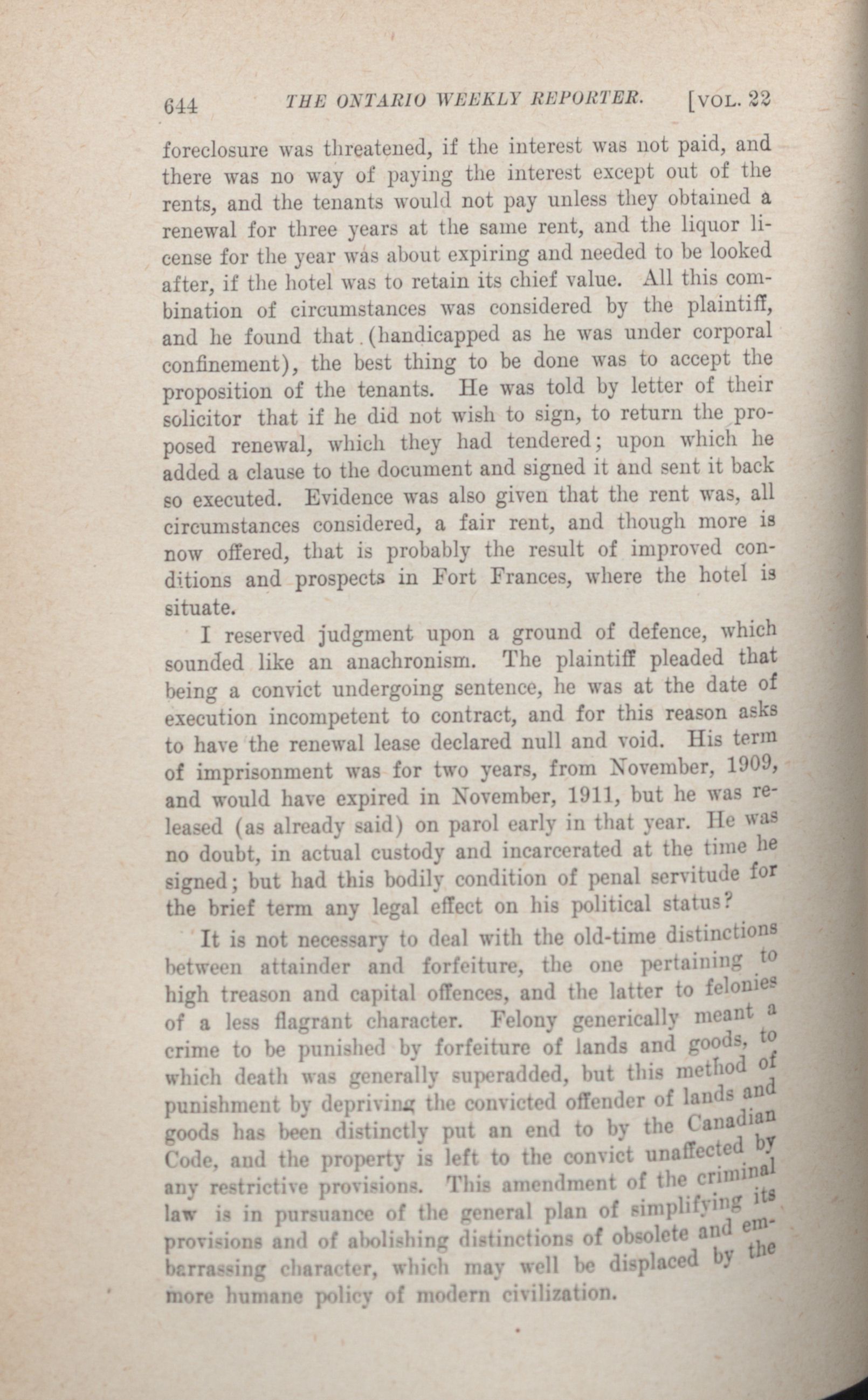 The Ontario weekly reporter. : Vol. 22 No. 10 (August 1, 1912.)
