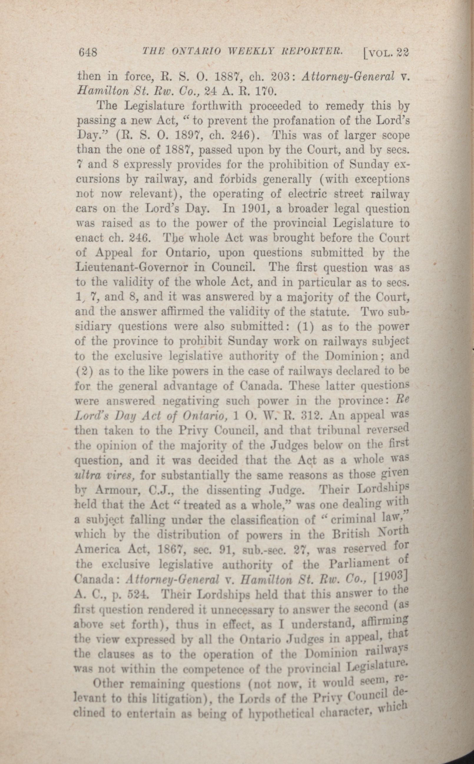 The Ontario weekly reporter. : Vol. 22 No. 10 (August 1, 1912.)