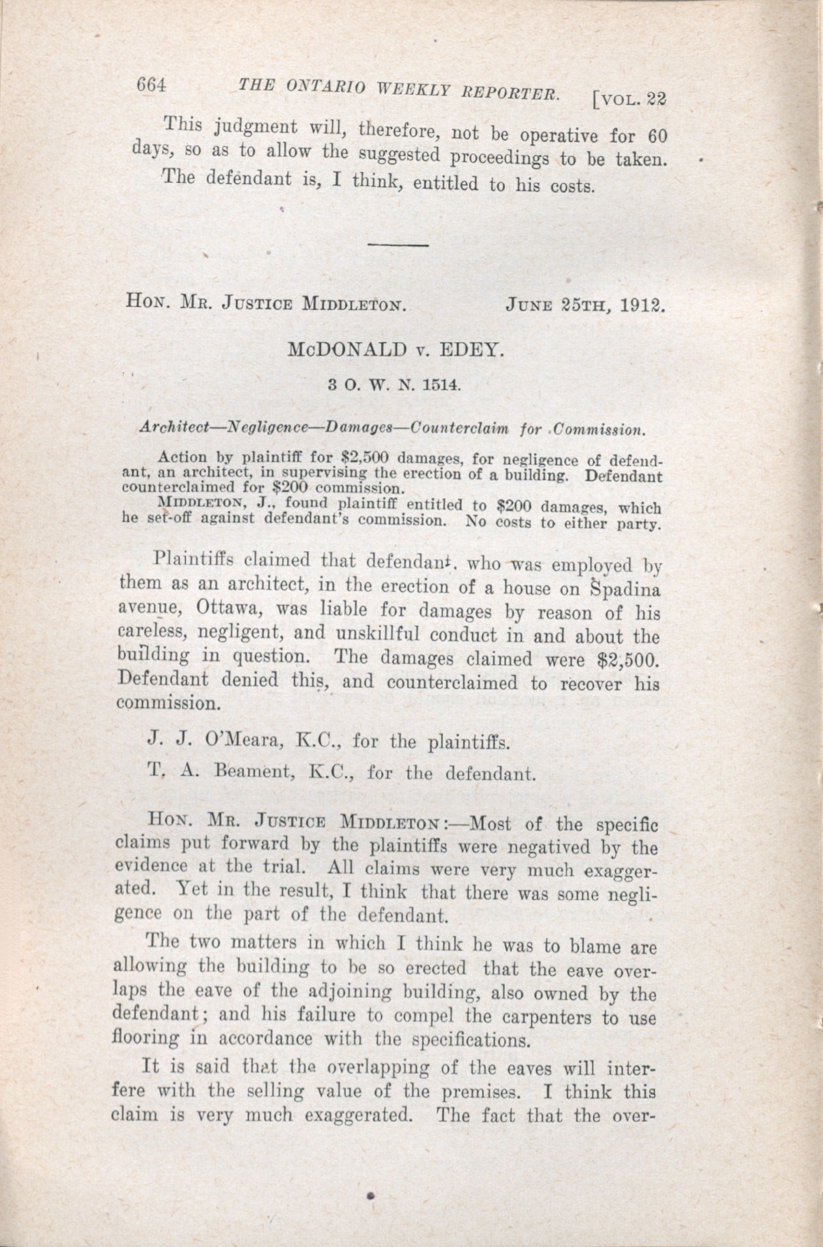 - The Ontario weekly reporter. : Vol. 22 No. 10 (August 1, 1912.)