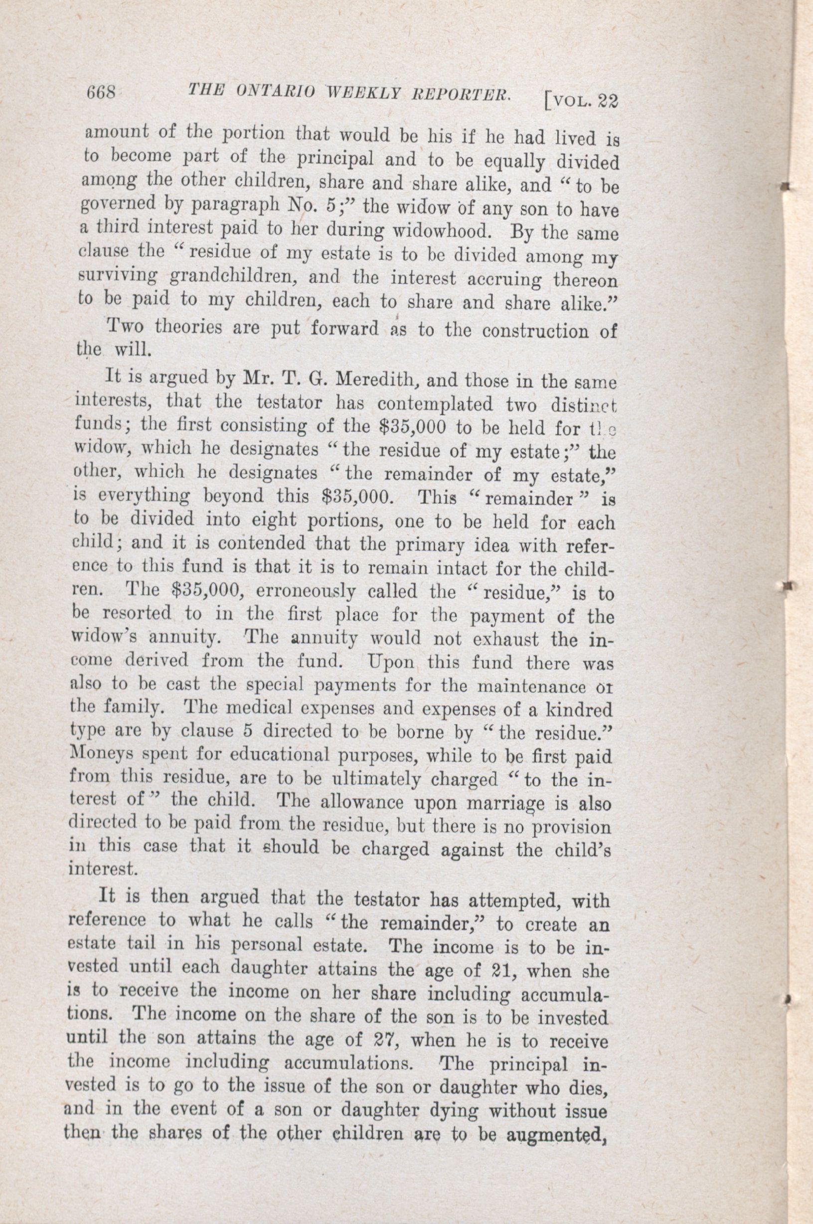 The Ontario weekly reporter. : Vol. 22 No. 10 (August 1, 1912.)
