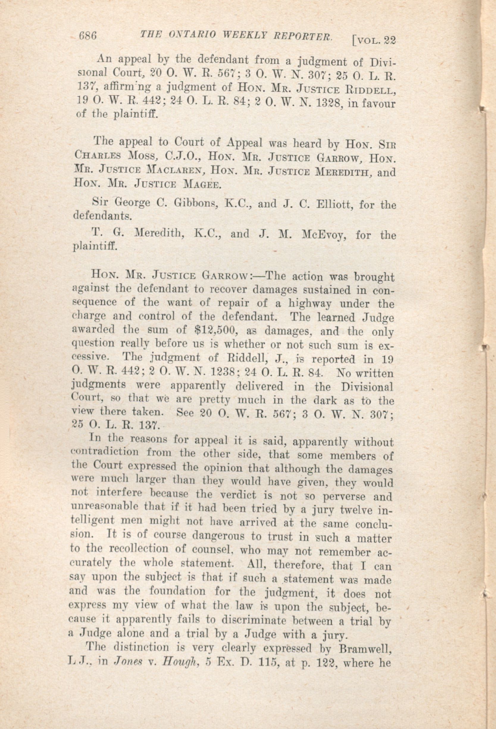 The Ontario weekly reporter. : Vol. 22 No. 11 (August 8, 1912.)