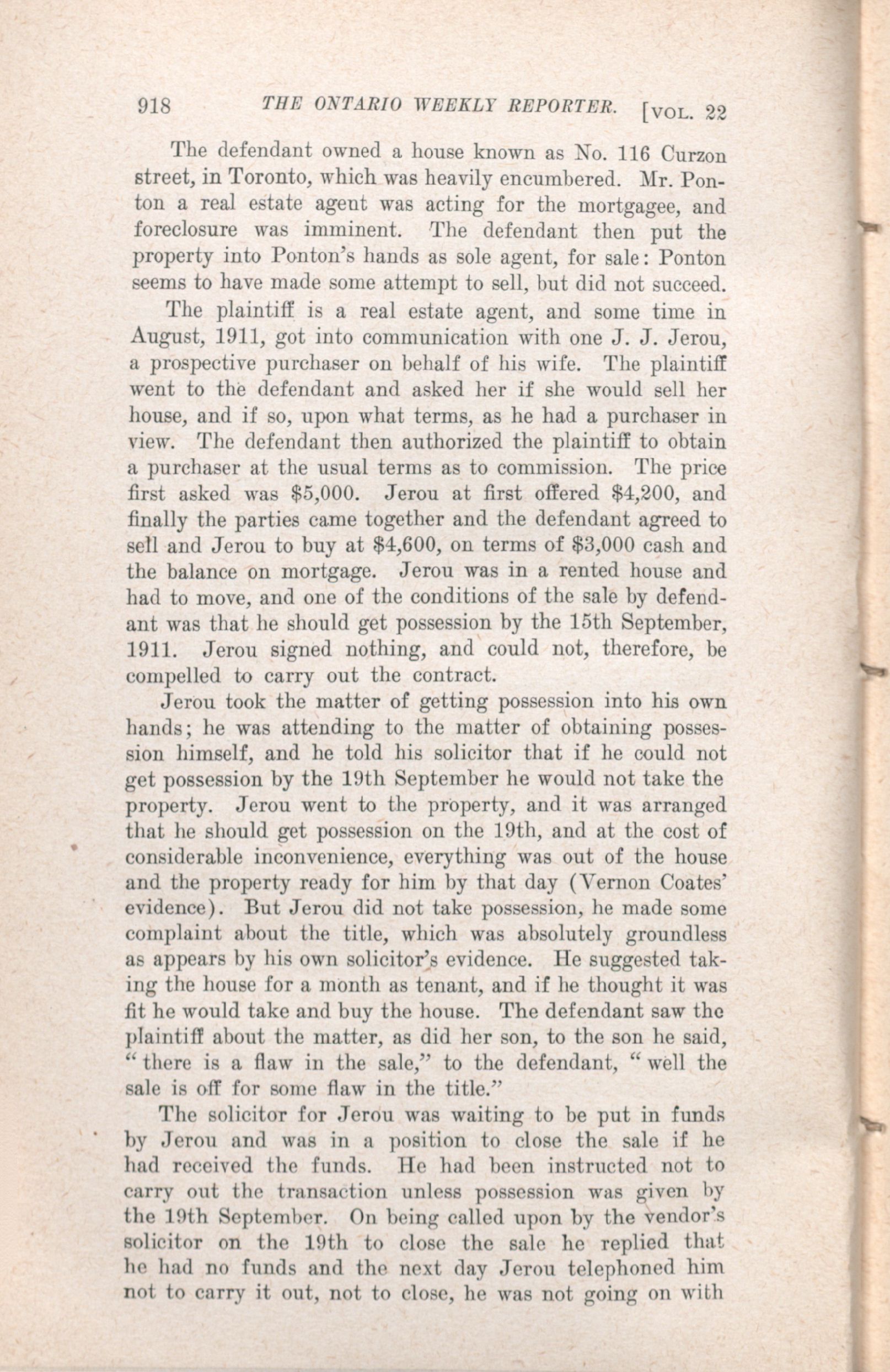 The Ontario weekly reporter. : Vol. 22 No. 15 (September 12, 1912.)