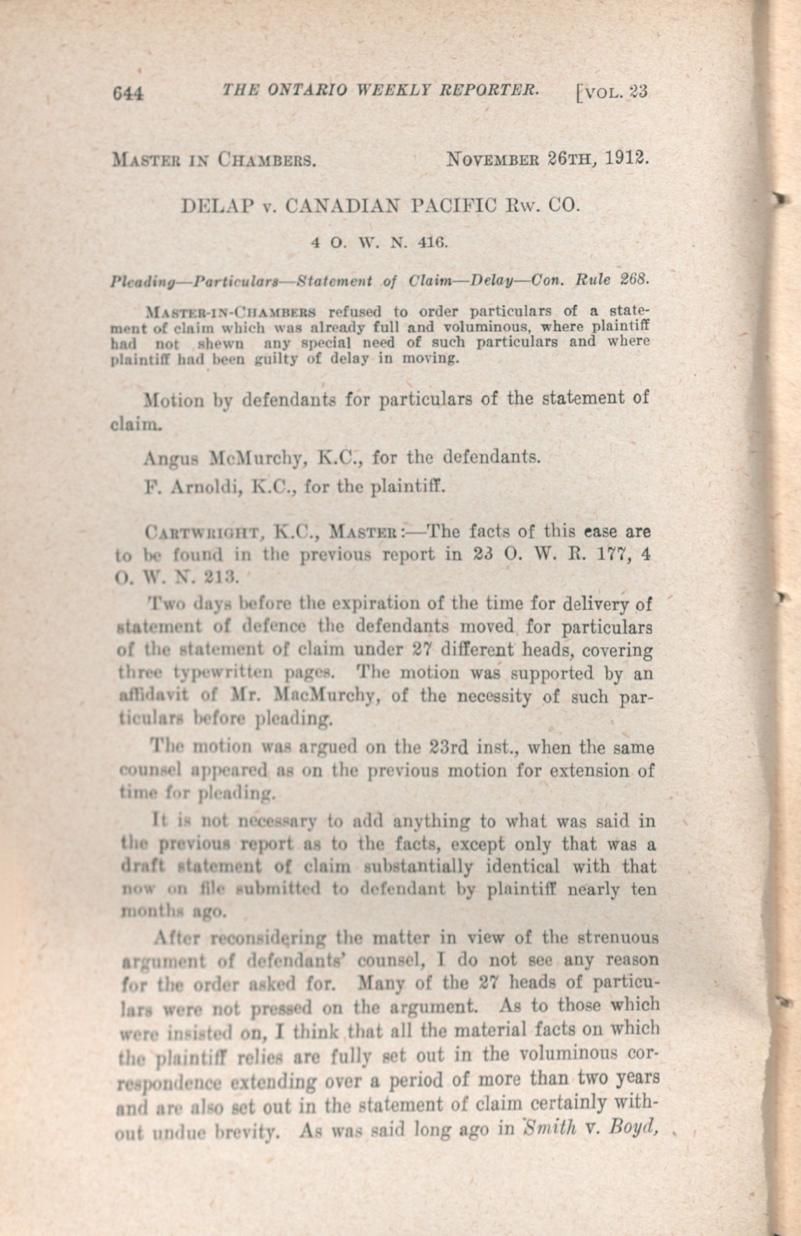 The Ontario weekly reporter. : Vol. 23 No. 13 (January 23, 1913.)