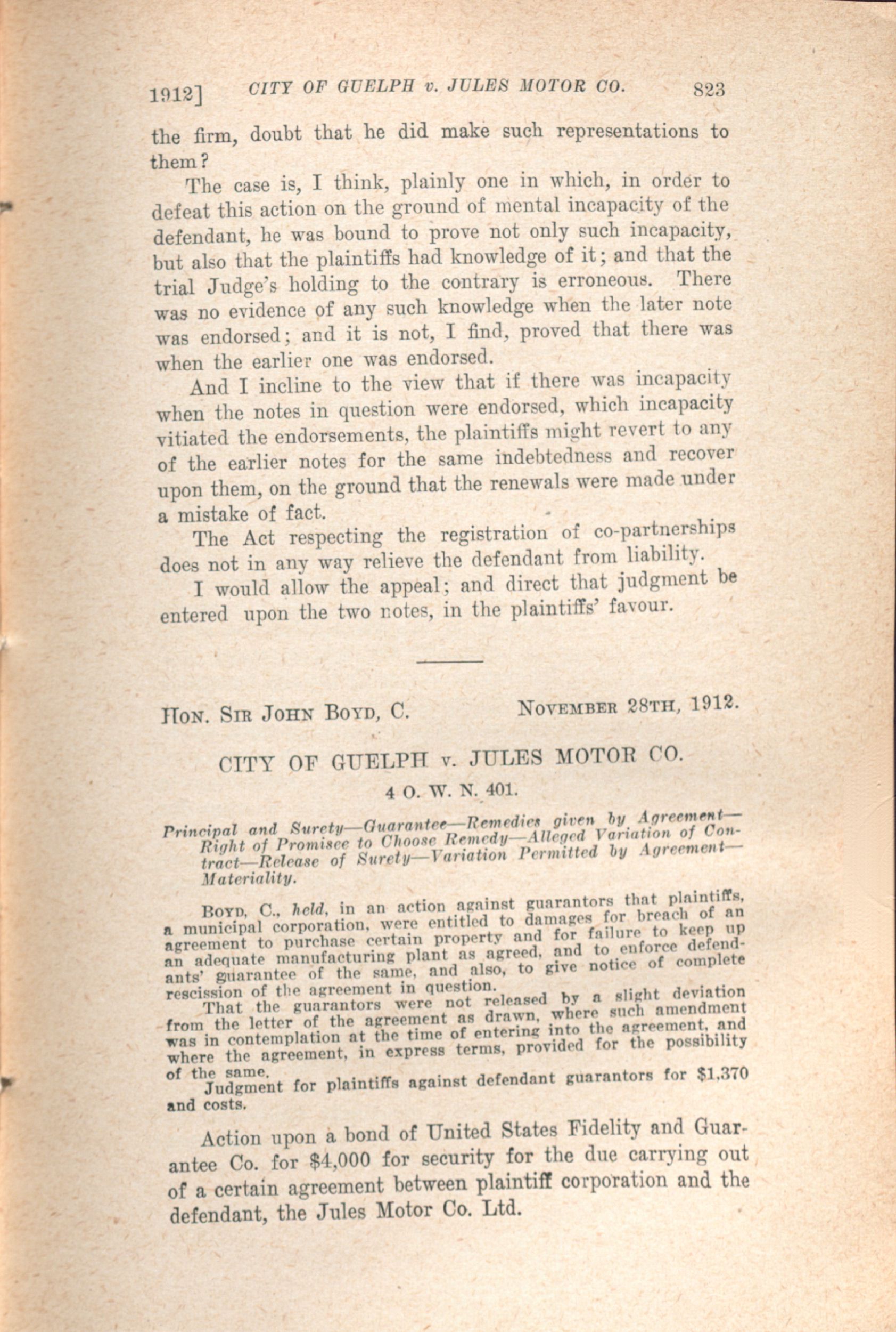 The Ontario weekly reporter. : Vol. 23 No. 16 (February 13, 1913.)