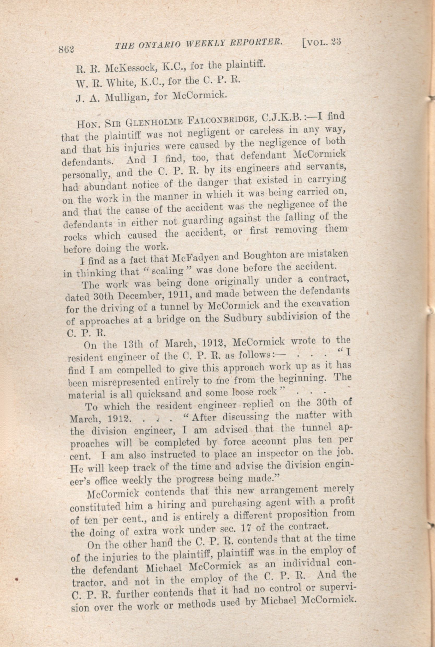The Ontario weekly reporter. : Vol. 23 No. 16 (February 13, 1913.)