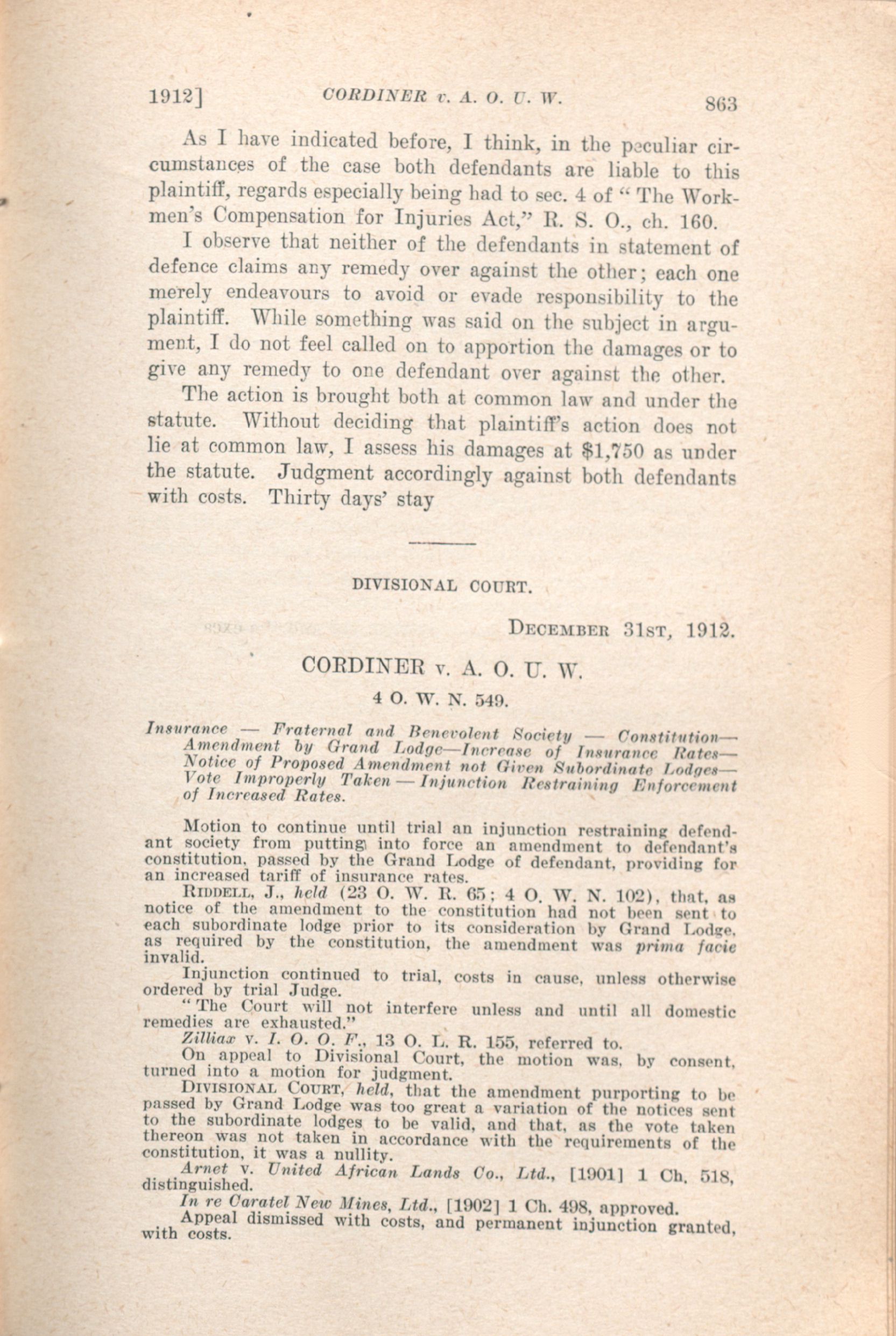 The Ontario weekly reporter. : Vol. 23 No. 16 (February 13, 1913.)