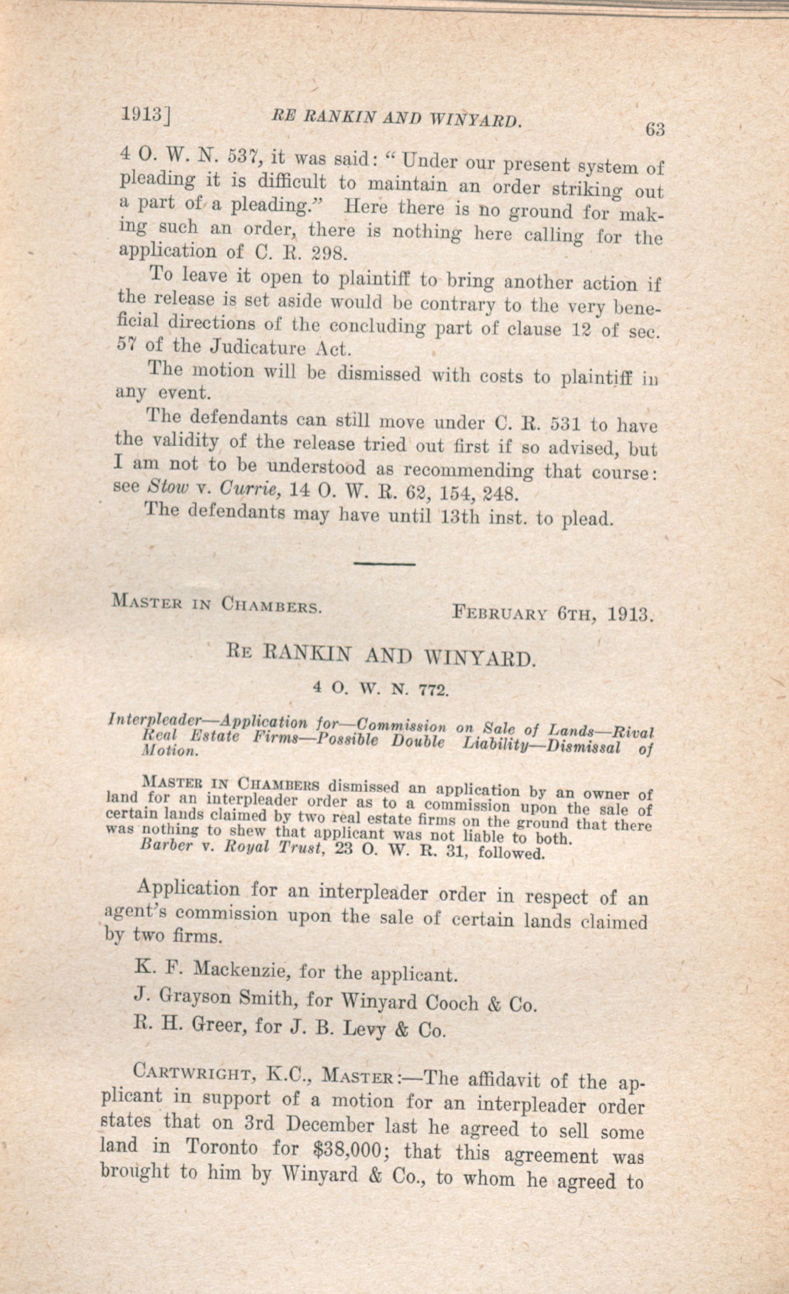 The Ontario weekly reporter. : Vol. 24 No. 1 (February 27, 1913.)