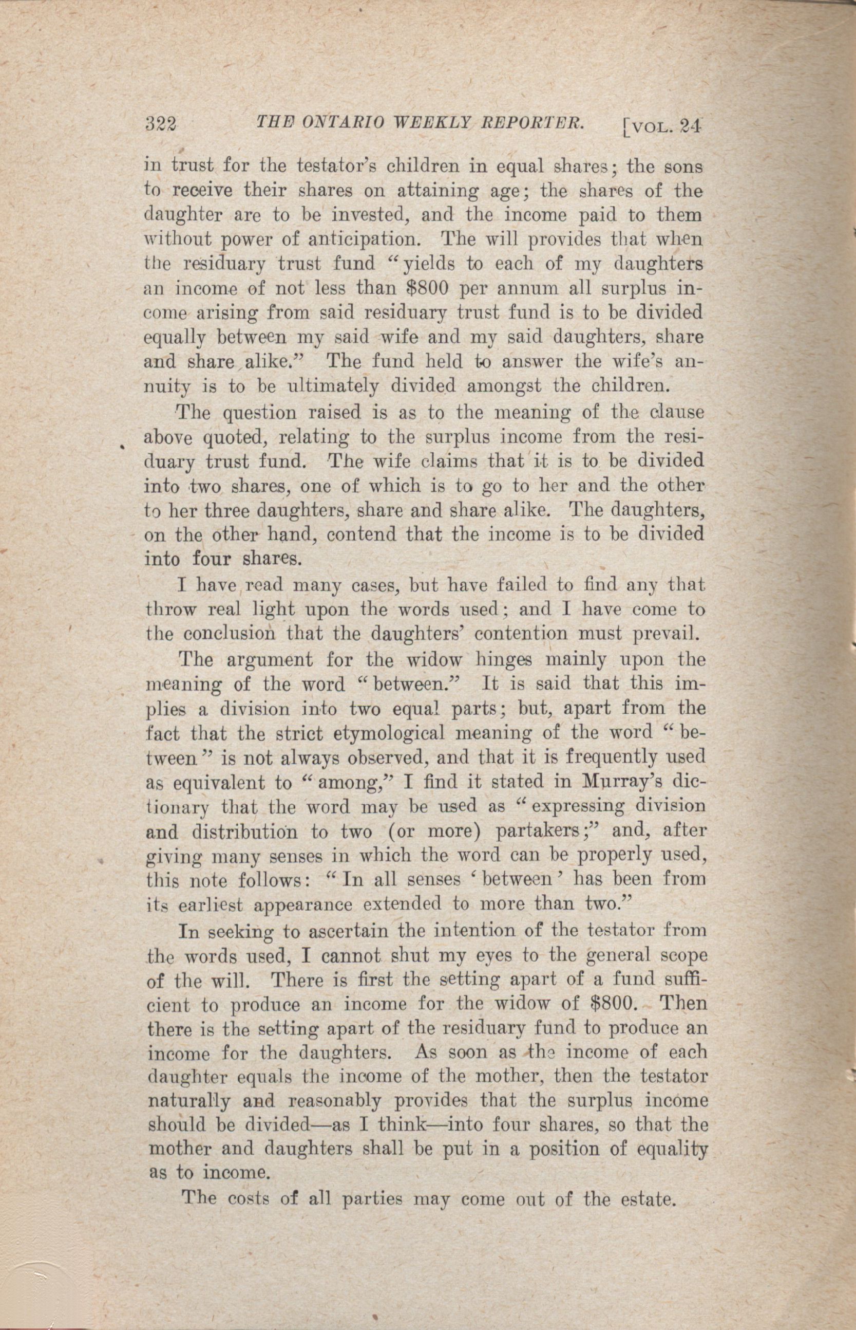 The Ontario weekly reporter. : Vol. 24 No. 7 (April 17, 1913.)