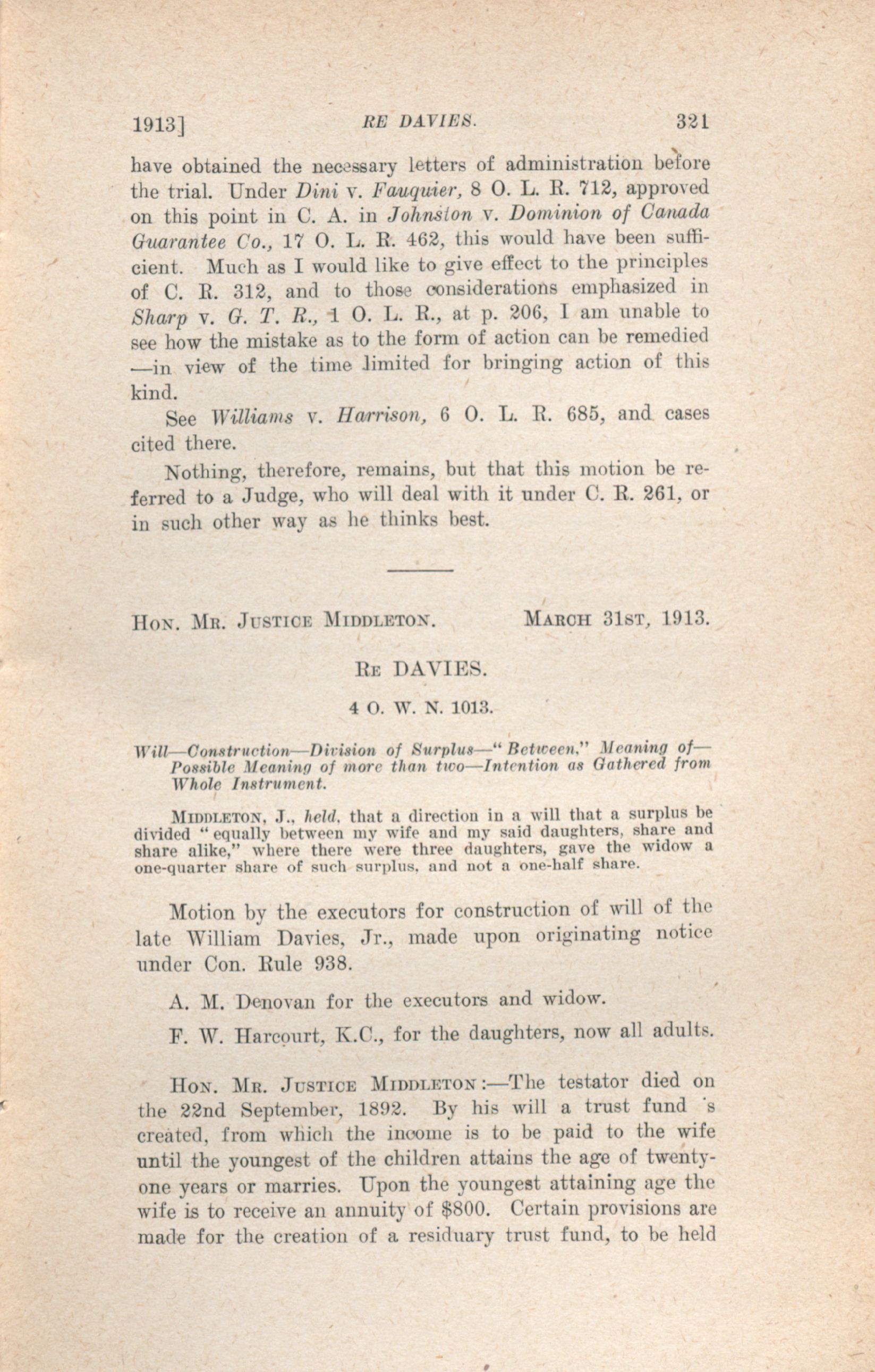 The Ontario weekly reporter. : Vol. 24 No. 7 (April 17, 1913.)