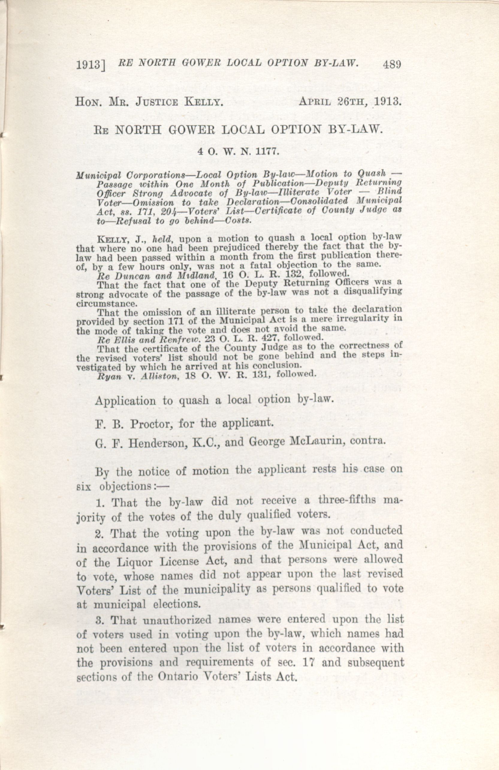 The Ontario weekly reporter. : Vol. 24 No. 10 (May 8, 1913.)