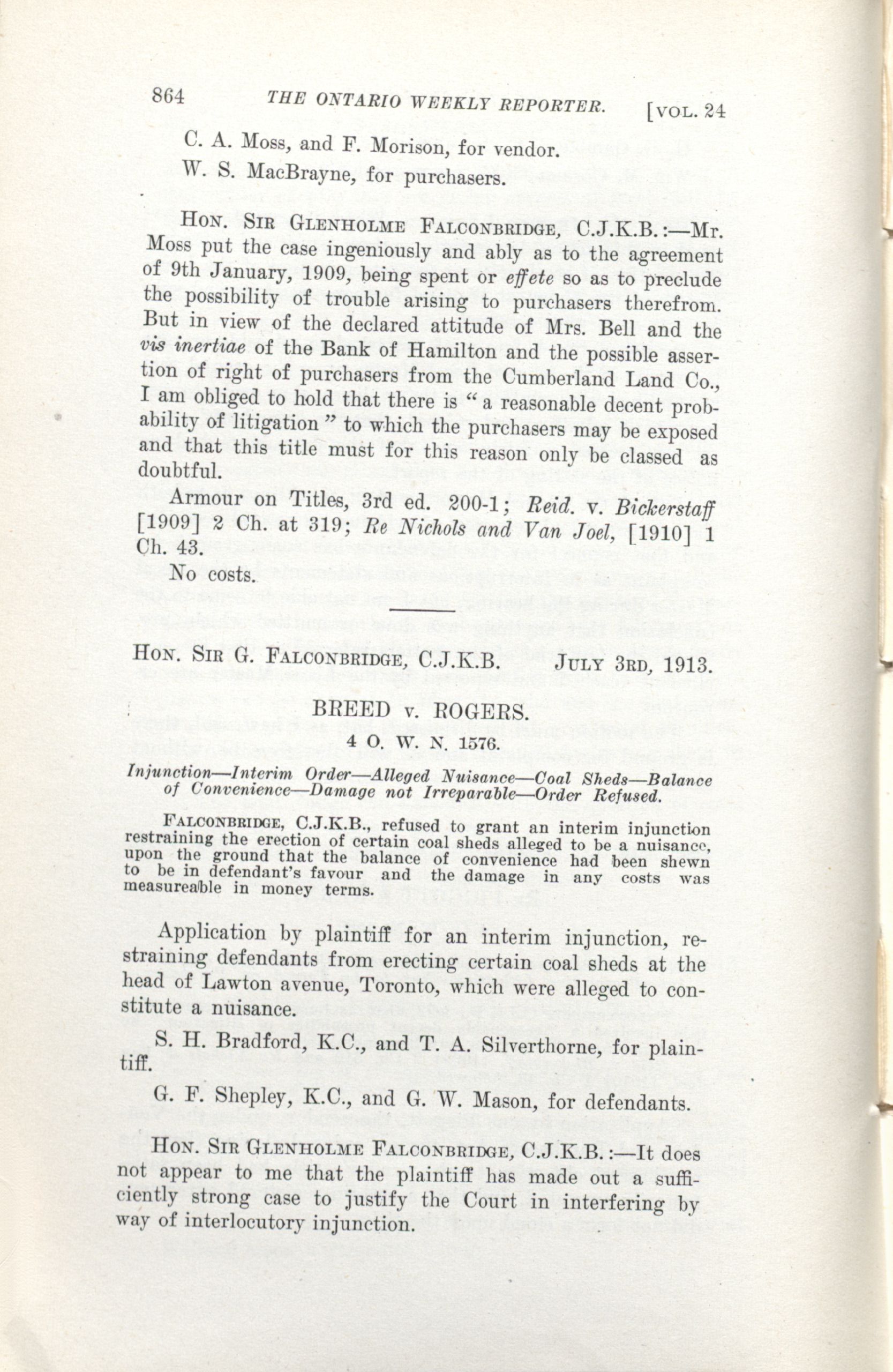 The Ontario weekly reporter. : Vol. 24 No. 17 (July 24, 1913.)