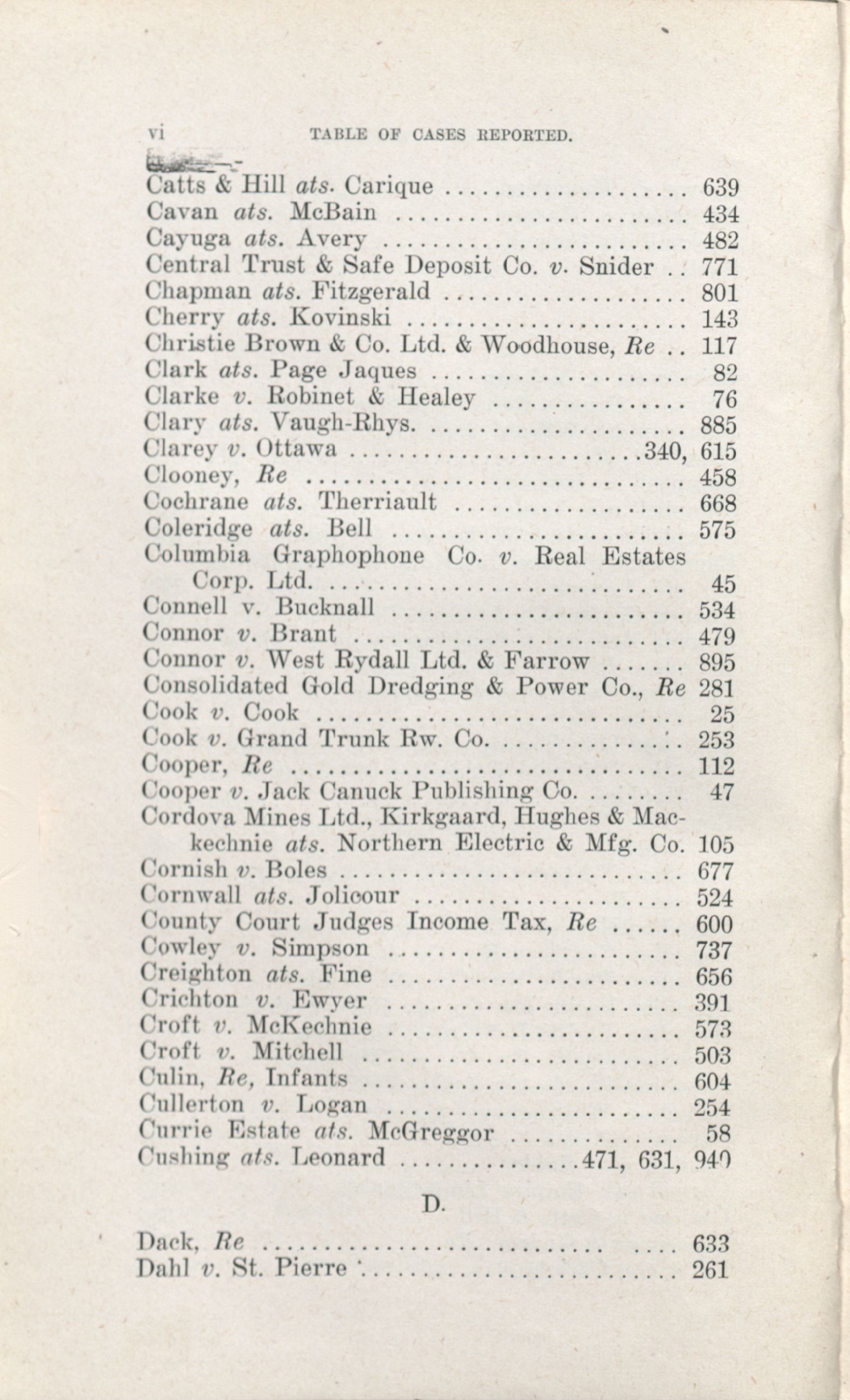 Index to cases for Vol. 25 included in this issue. Index to Vol. 25 in Vol. 25, No. 18, CIHM no. 8_06873_639.