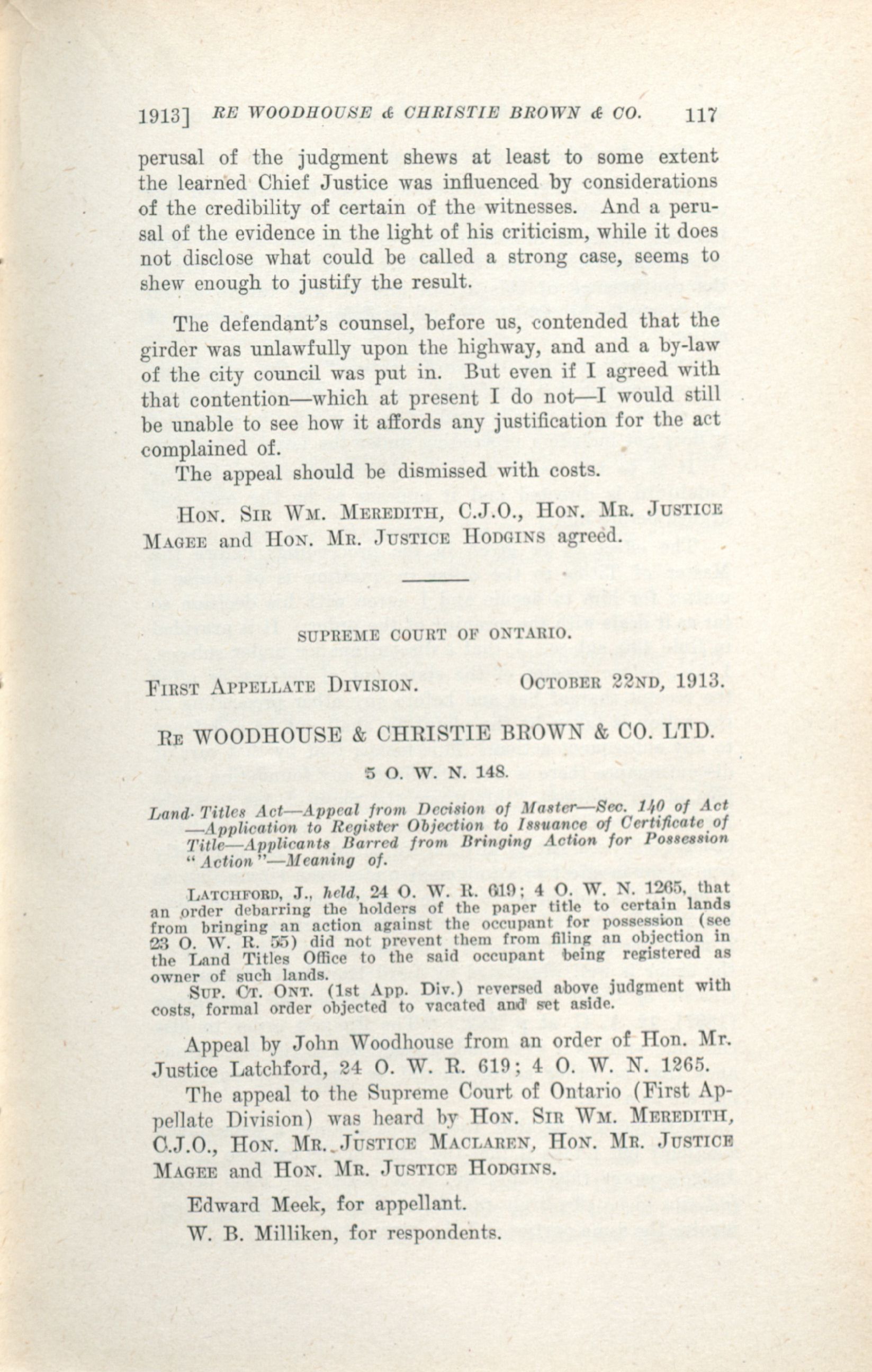 The Ontario weekly reporter. : Vol. 25 No. 3 (November 6, 1913.)