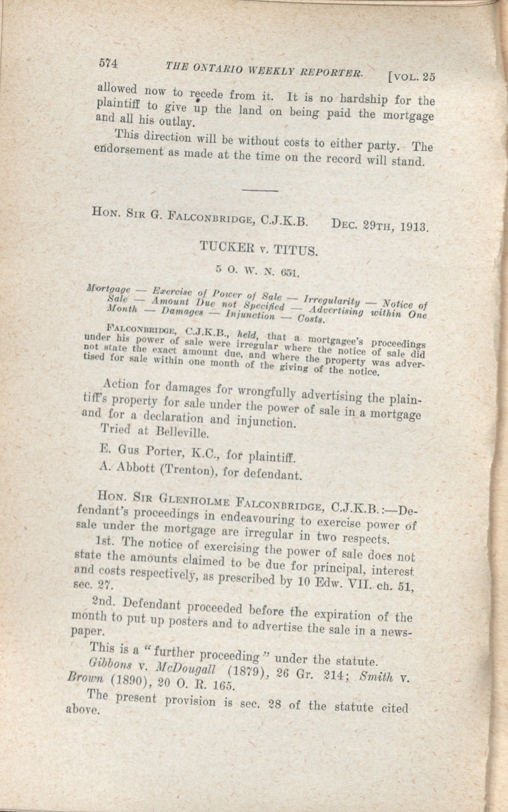 The Ontario weekly reporter. : Vol. 25 No. 11 (January 29, 1914.)