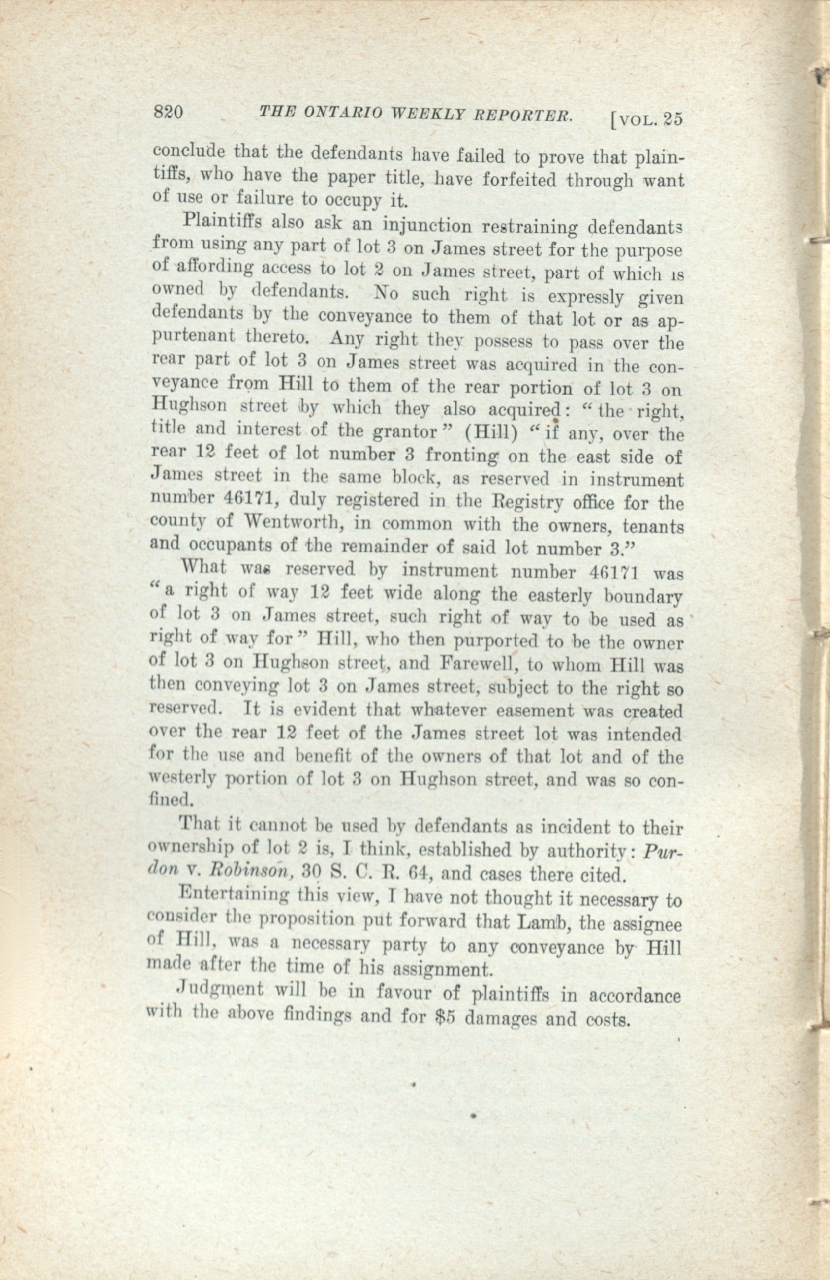 The Ontario weekly reporter. : Vol. 25 No. 15 (March 19, 1914.)
