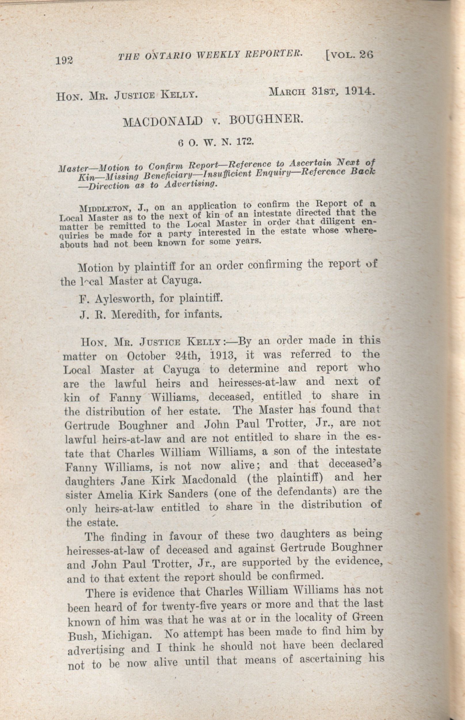 - The Ontario weekly reporter. : Vol. 26. No. 4. (May 14, 1914.)