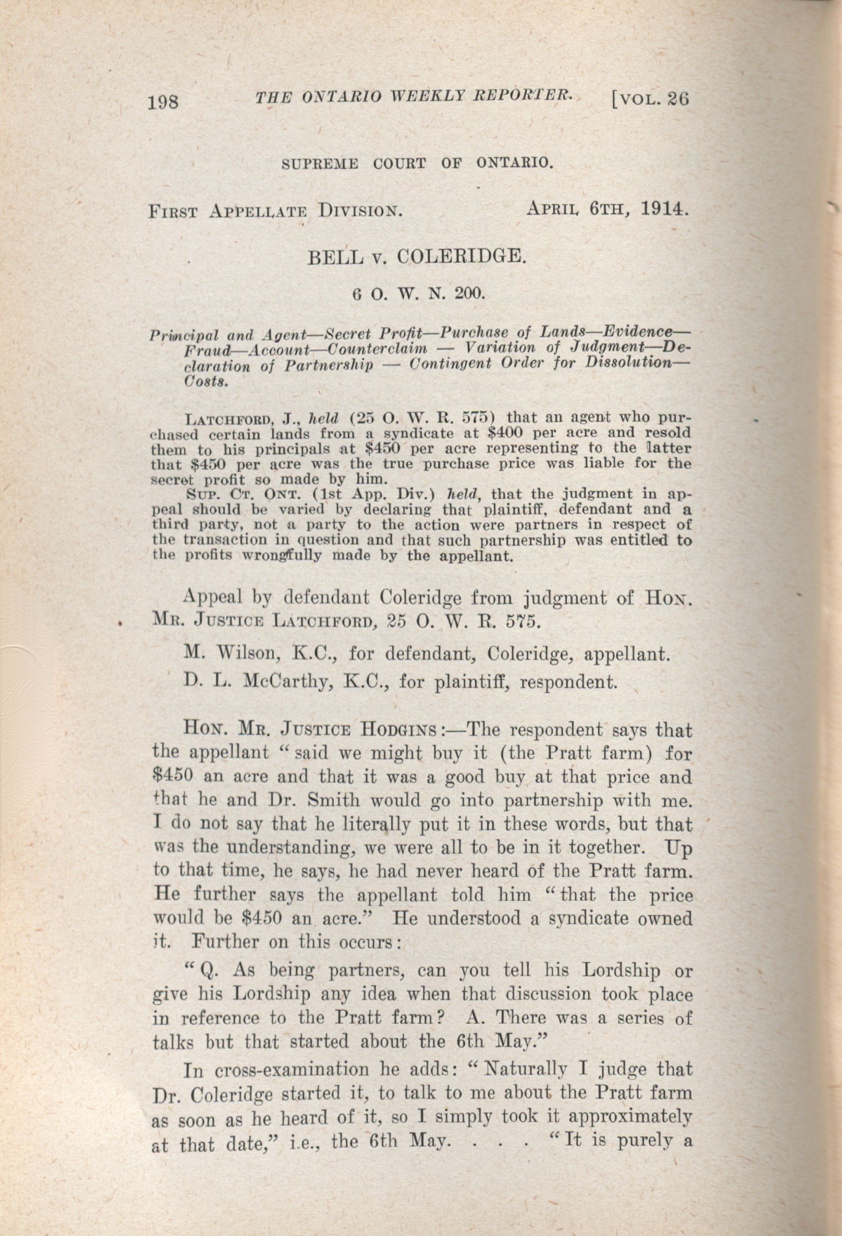 - The Ontario weekly reporter. : Vol. 26. No. 4. (May 14, 1914.)