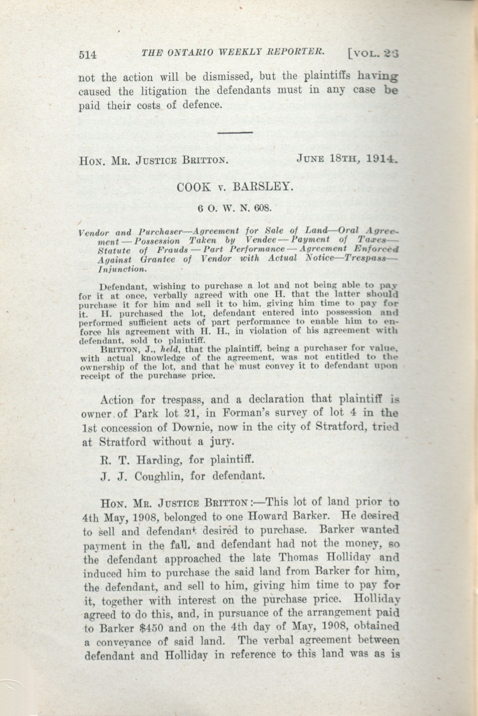 - The Ontario weekly reporter. : Vol. 26. No. 11. (August 27, 1914.)
