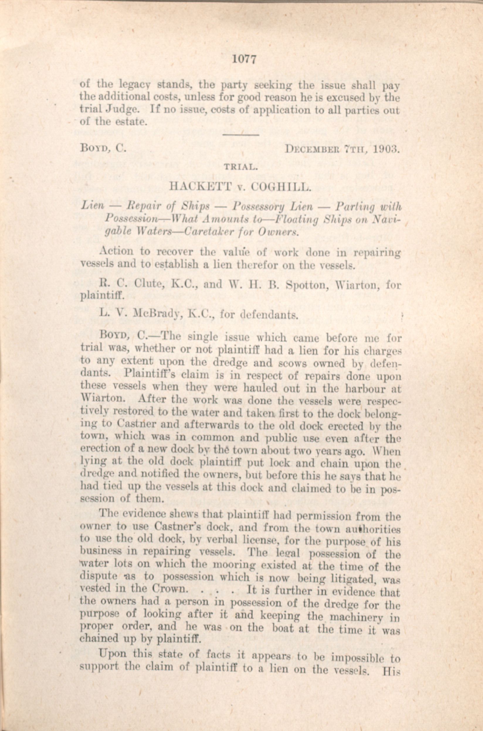 The Ontario weekly reporter. : Vol. II. No. 43. (December 17, 1903.)